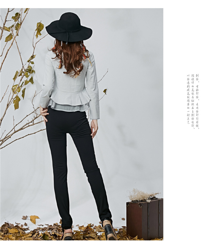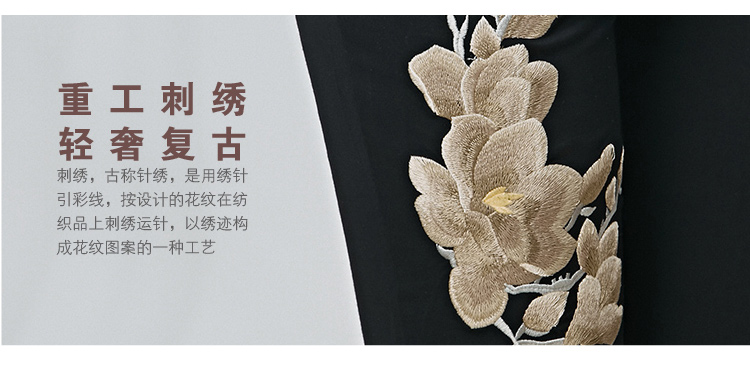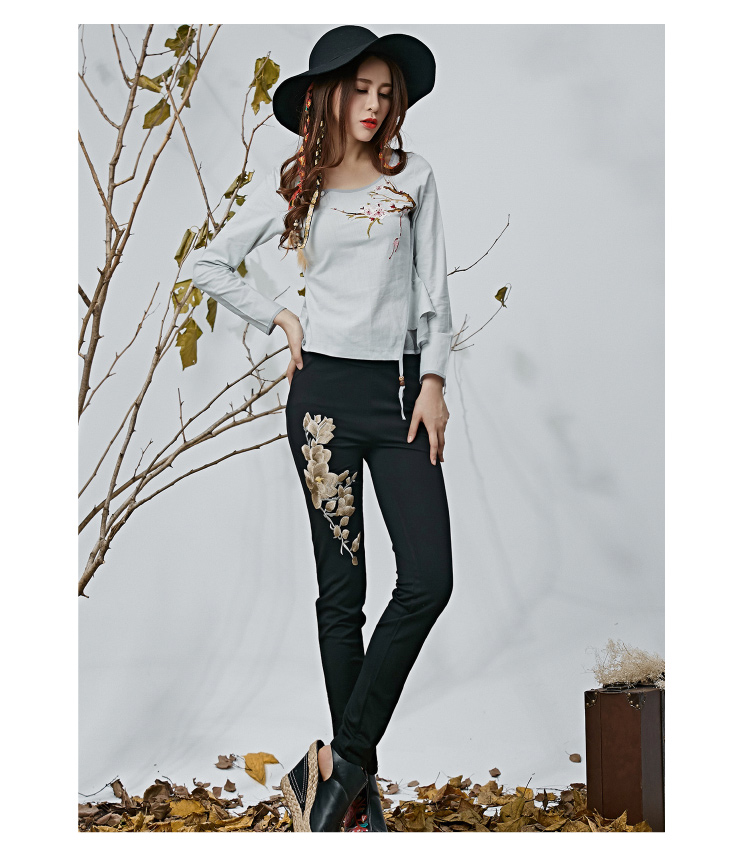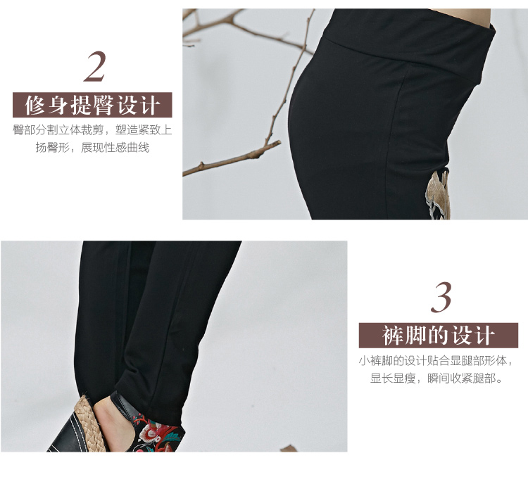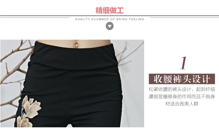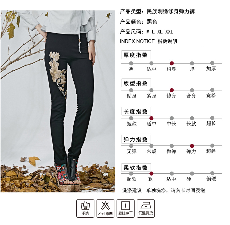 黑色M春夏季新款女裝民族風長褲文藝風刺繡花高腰松緊超彈打底褲休閑褲