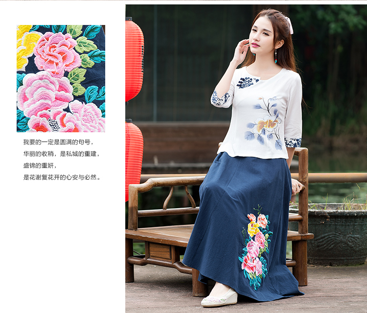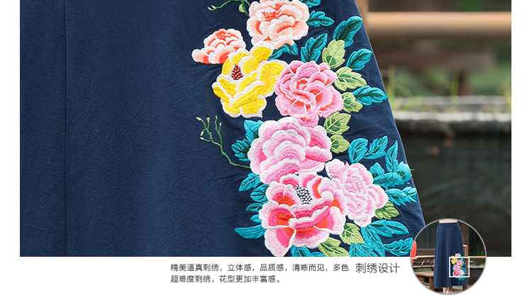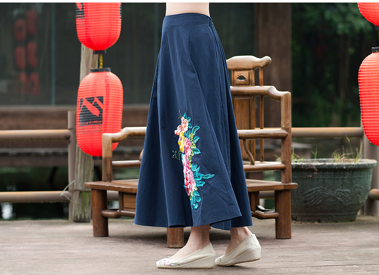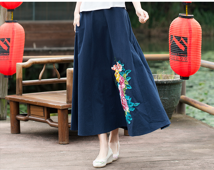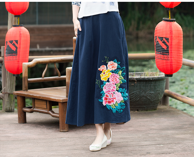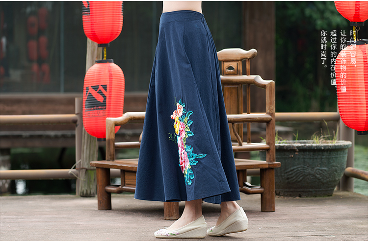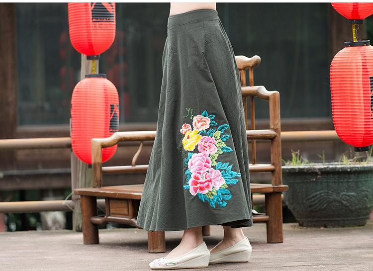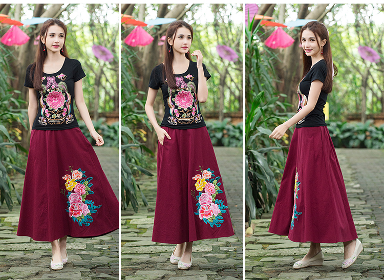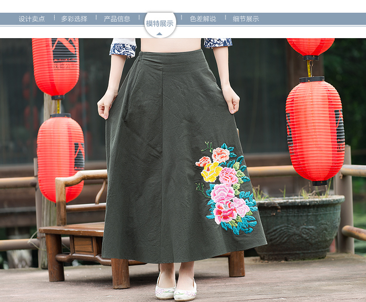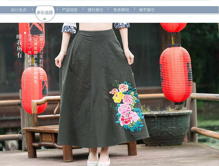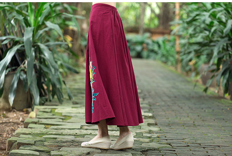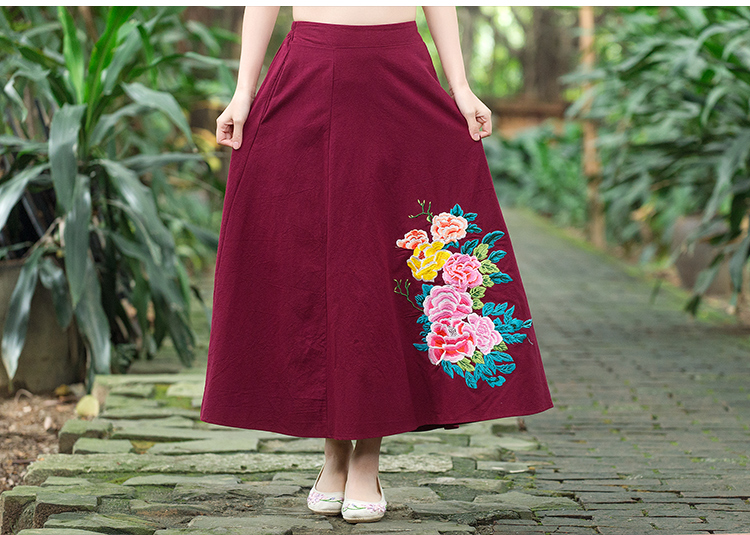 紅色均碼2016年春夏季新款女裝重工刺繡花棉麻亞麻大擺裙半身裙長裙百搭裙