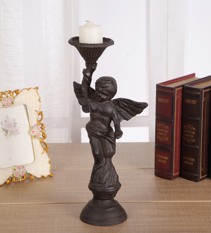 一個歐式復古鑄鐵工藝品小天使仿舊鐵藝燭臺蠟臺蠟燭臺家居裝飾擺件