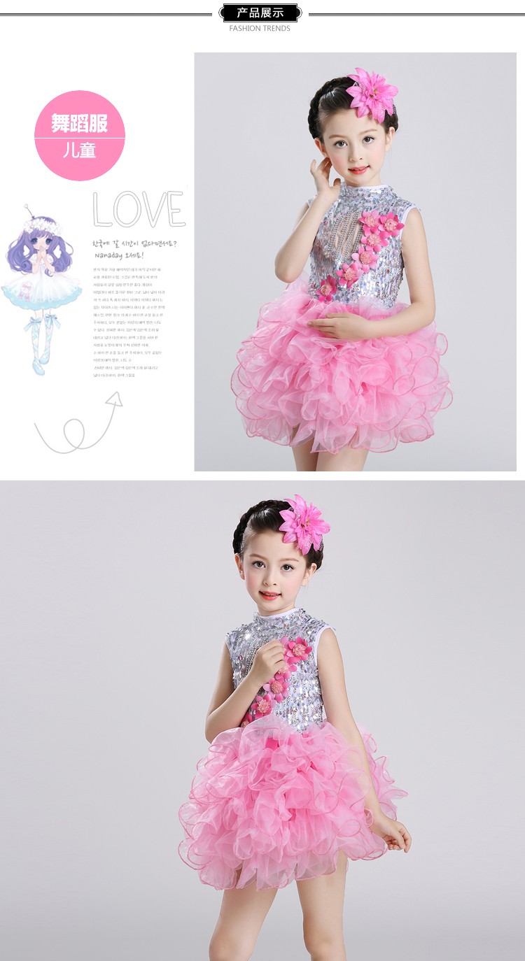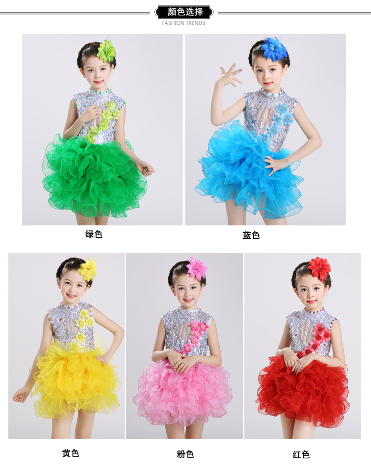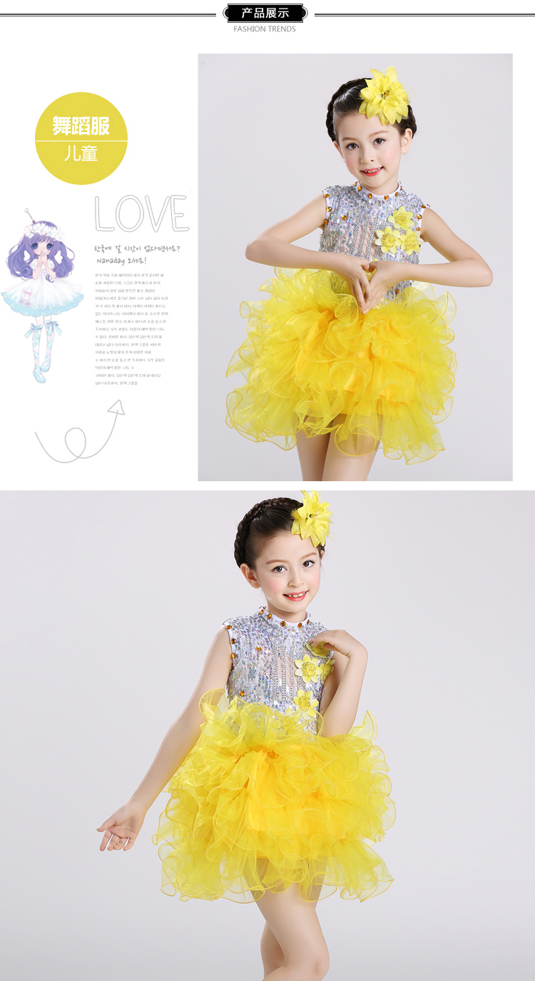 黃色100cm2017新款兒童演出服幼稚園舞蹈服女童蓬蓬紗裙少兒亮片舞臺表演服