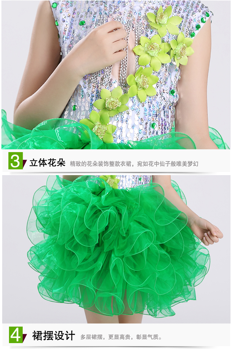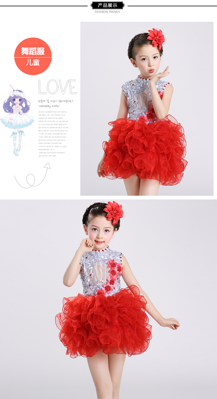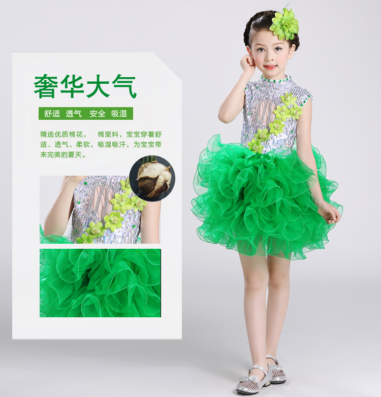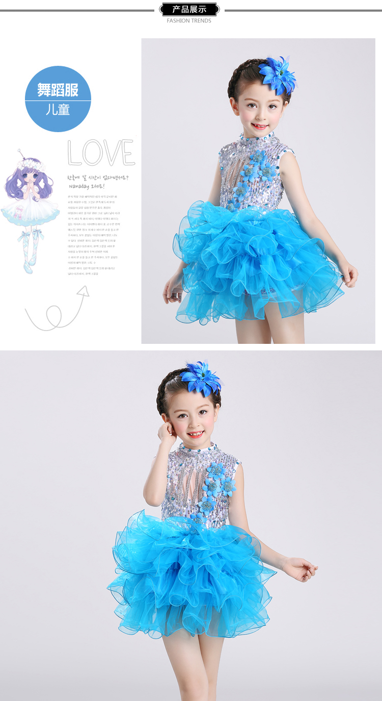 黃色100cm2017新款兒童演出服幼稚園舞蹈服女童蓬蓬紗裙少兒亮片舞臺表演服