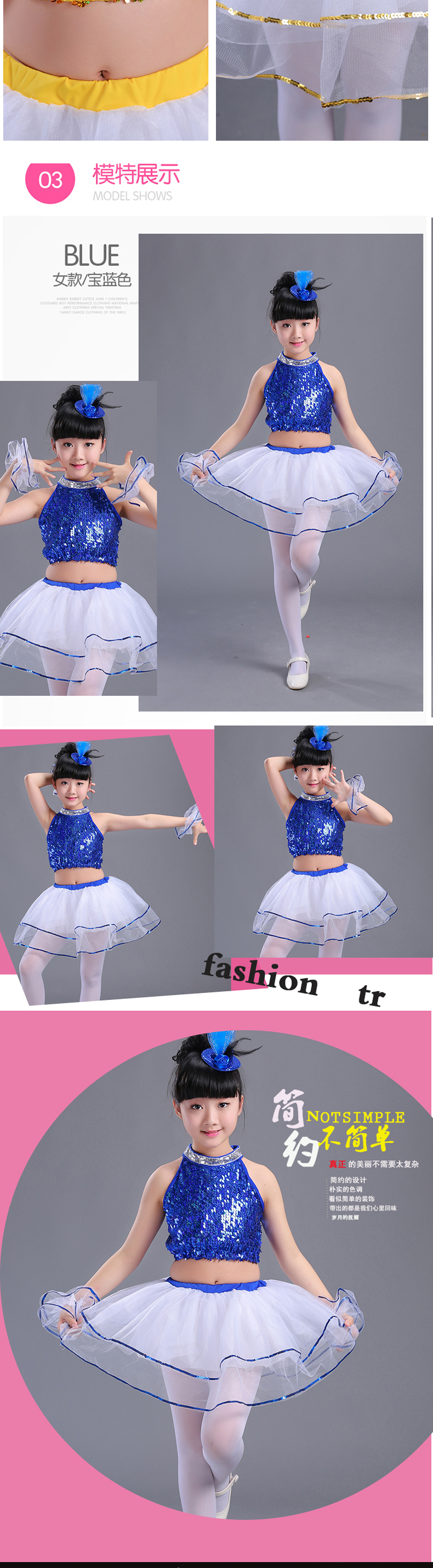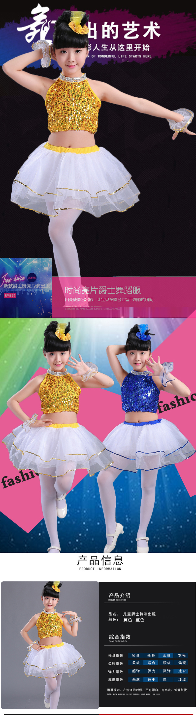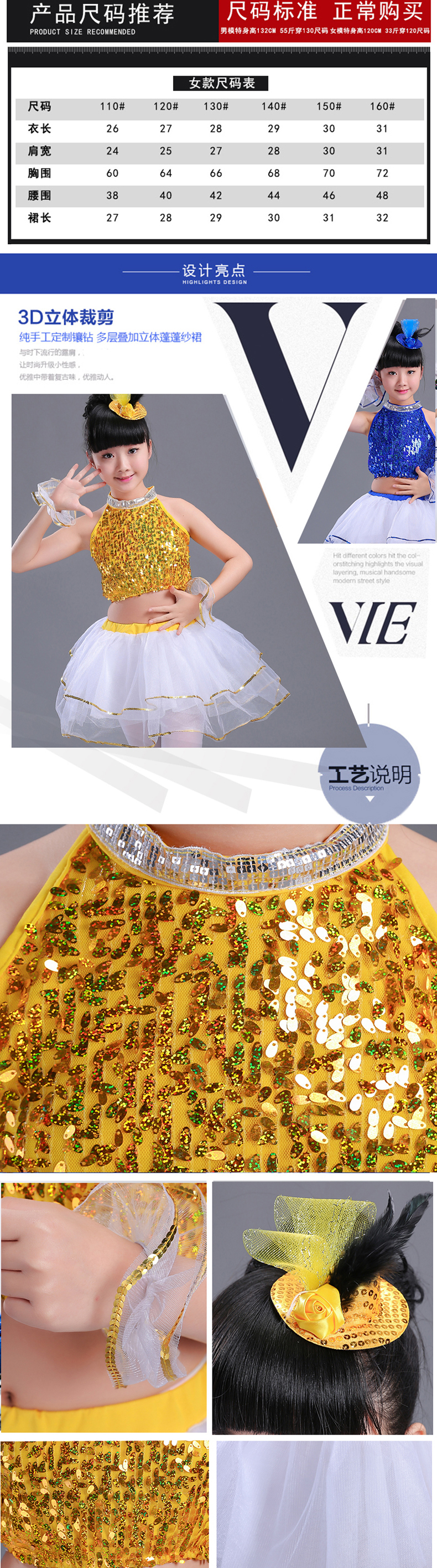 黃色100cm六一兒童節演出中小學合唱服女童亮片公主裙爵士舞幼兒表演蓬蓬裙