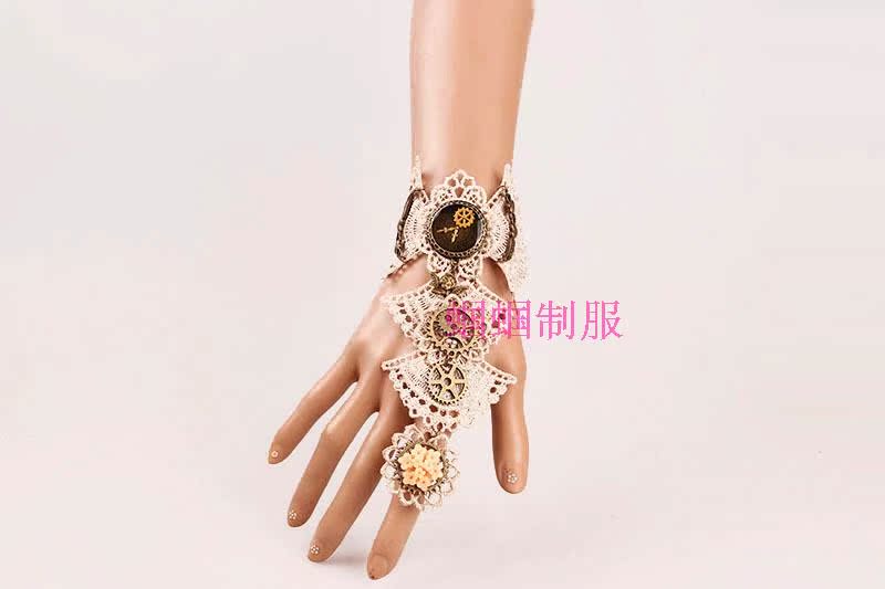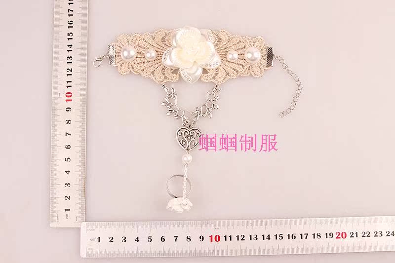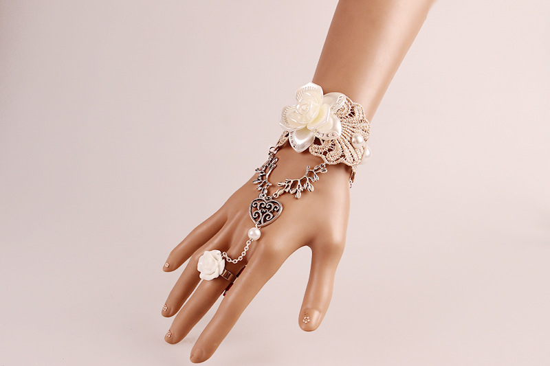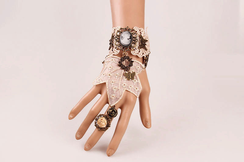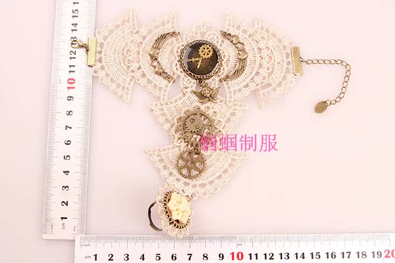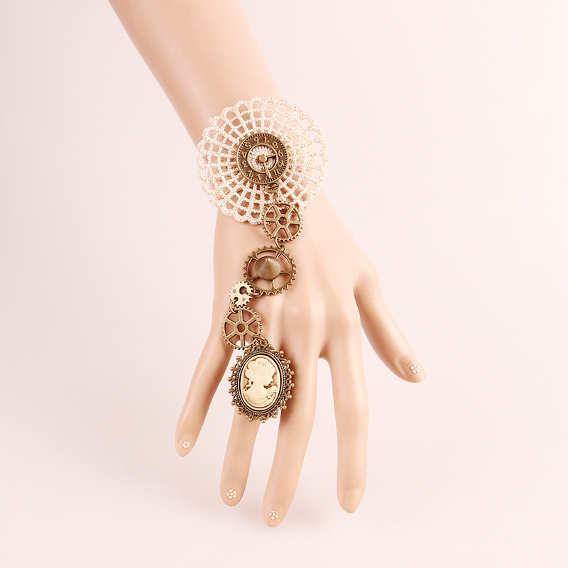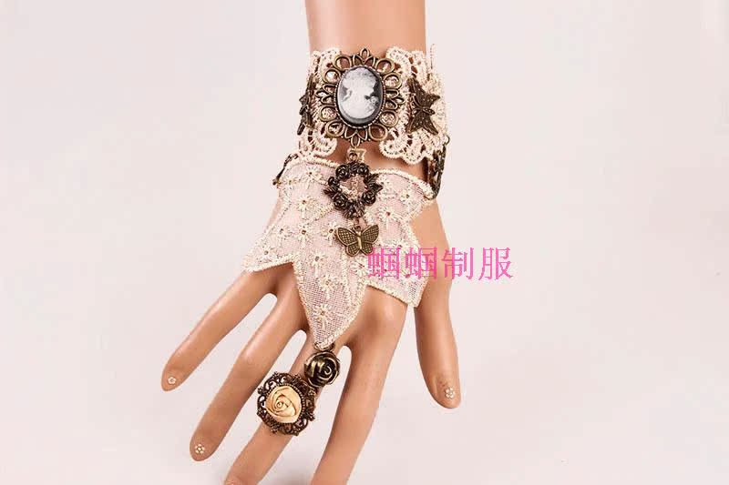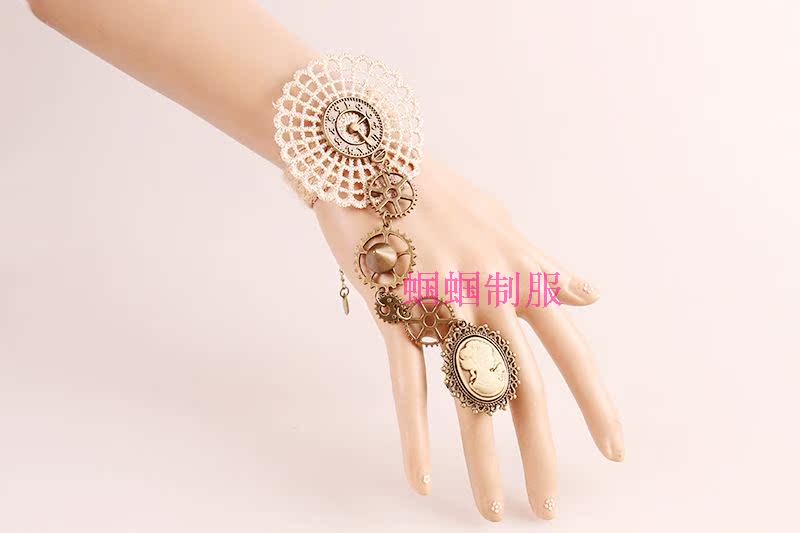 1新款歐美風高檔復古精致蕾絲手鏈帶戒指一體鏈創意手工飾品女