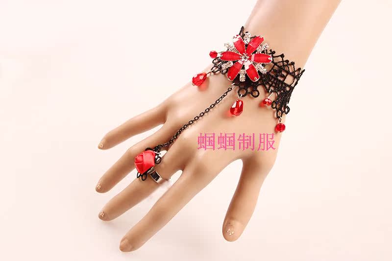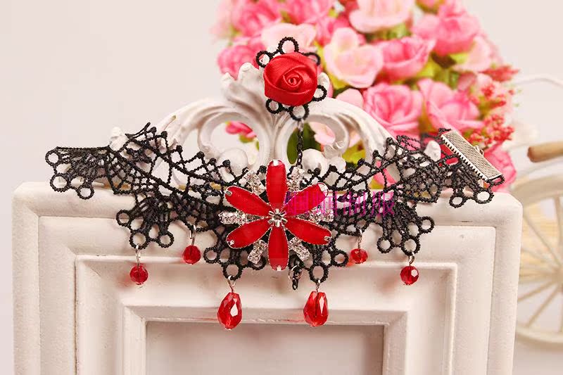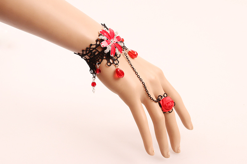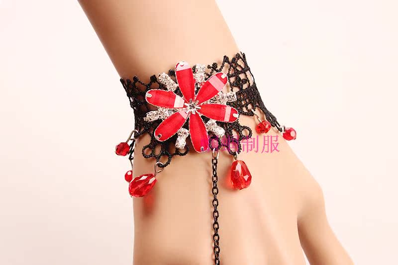 1復古歐美精致蕾絲花朵時尚女款手鏈十字架水晶腕帶手飾歐美飾品