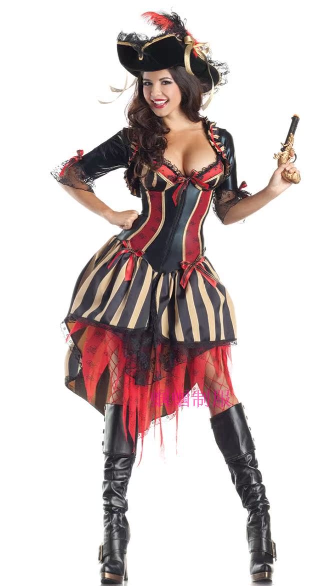 1均碼萬圣節服裝化裝舞會cos加勒比女海盜 成人海盜杰克船長演出服飾