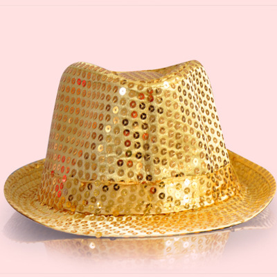 1均碼現代舞蹈帽舞臺帽亮片帽子表演帽禮帽亮片爵士帽牛仔帽新款