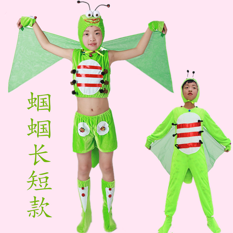 蟈蟈長款100cm2017六一兒童節新款兒童動物演出服綠色蟈蟈長款連體衣短款分體衣