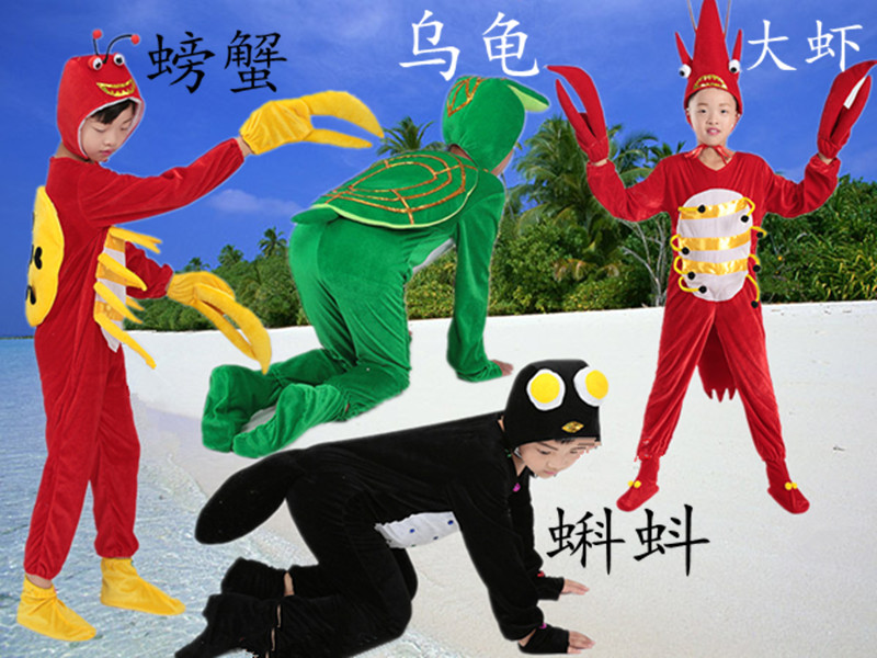 蝌蚪100cm兒童海洋生物演出服烏龜蝌蚪螃蟹大蝦長款表演服成人幼兒游戲服裝