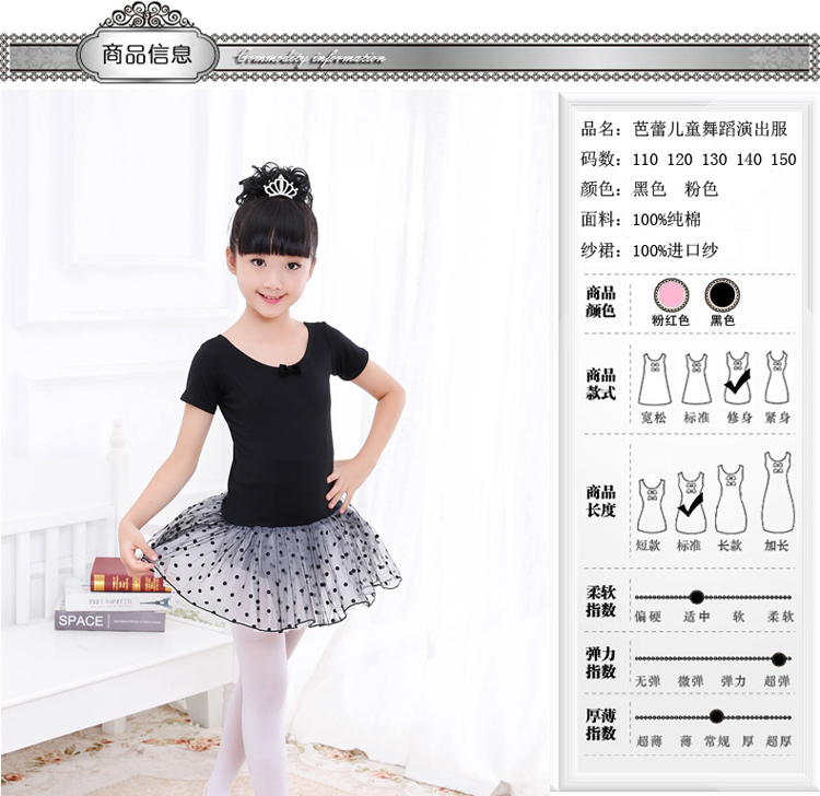 黑色110cm兒童舞蹈服裝女童芭蕾舞裙春夏演出紗裙練功服表演服連衣裙蓬蓬裙