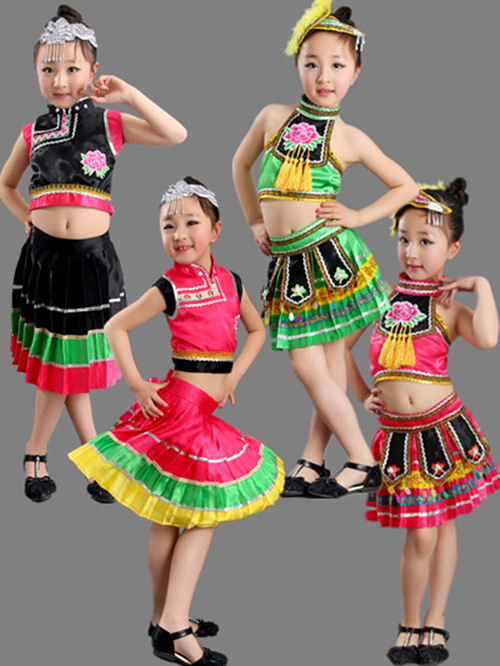 黑色110cm兒童少數民族演出服群舞獨舞幼兒女童彝族苗族壯族土家族舞蹈服裝