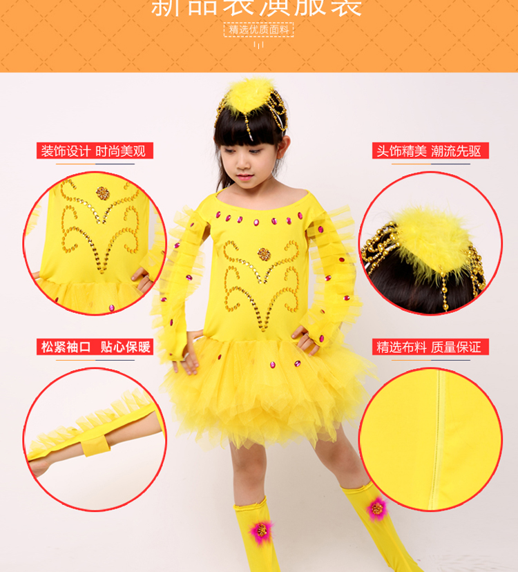黃色90cm兒童動物服小雞也瘋狂舞蹈服幼兒演出女童小雞表演服兒童小鳥表演