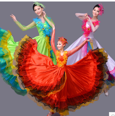 白色S新款民族舞蹈服基督教大擺裙大合唱服長裙服開場舞廣場演出合唱服