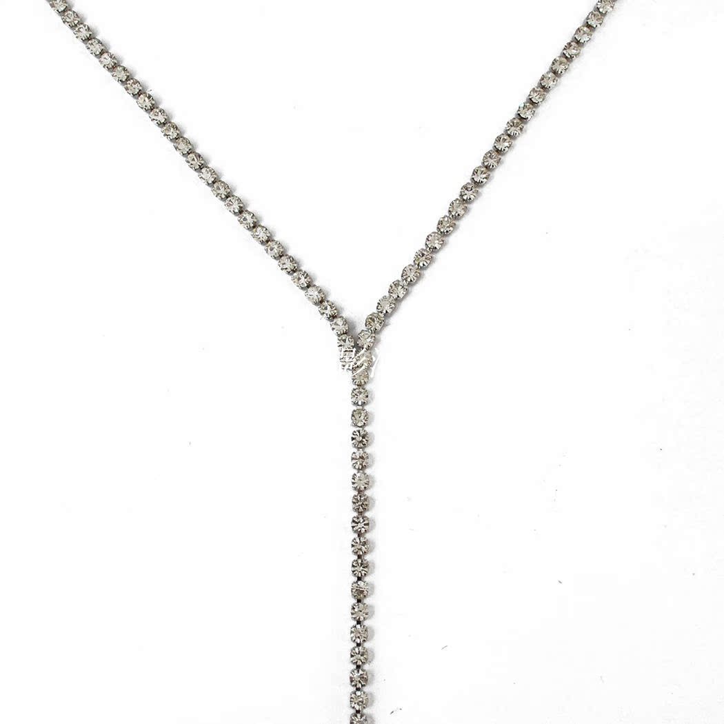 銀色歐美潮人飾品 酒吧性感女歌手舞臺演出閃亮鉆長款項鏈項圈