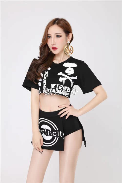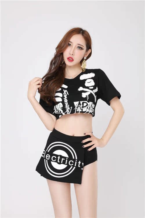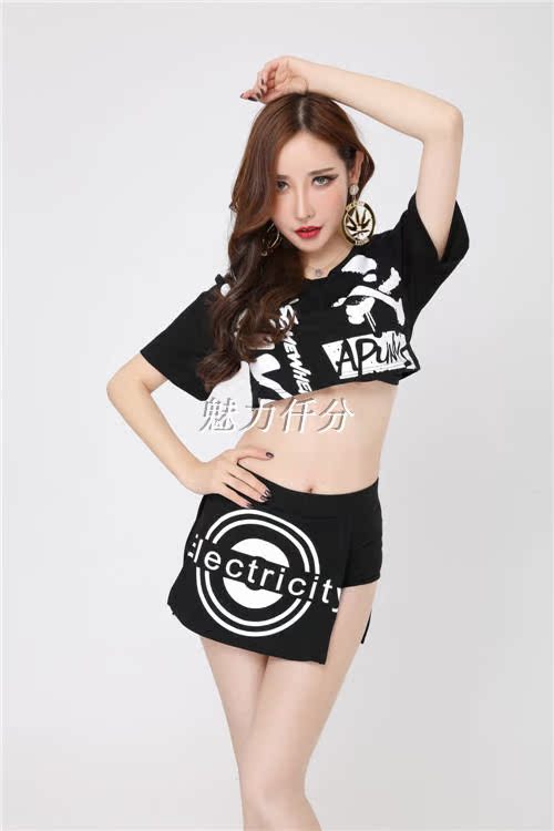 黑色均碼新款ds演出服性感夜店酒吧dj女歌手領舞服時尚黑色嘻哈舞蹈服裝