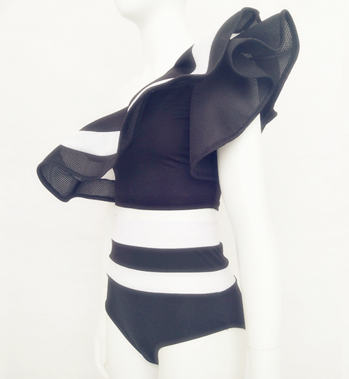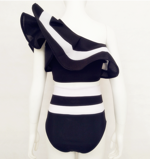 黑色S歐美爆款熱銷酒吧DS演出服夏季女裝新款單肩飛袖拼接性感連體衣