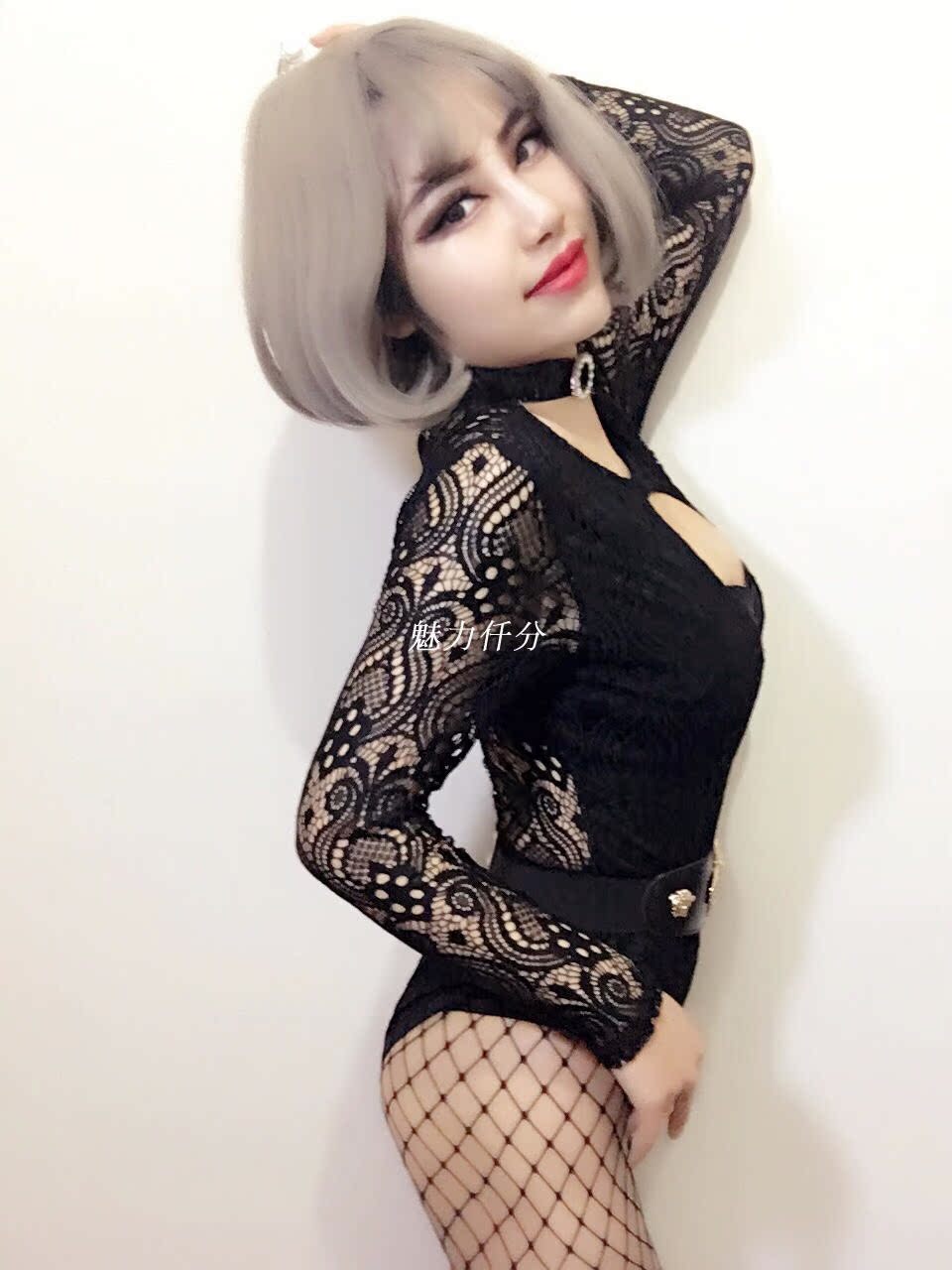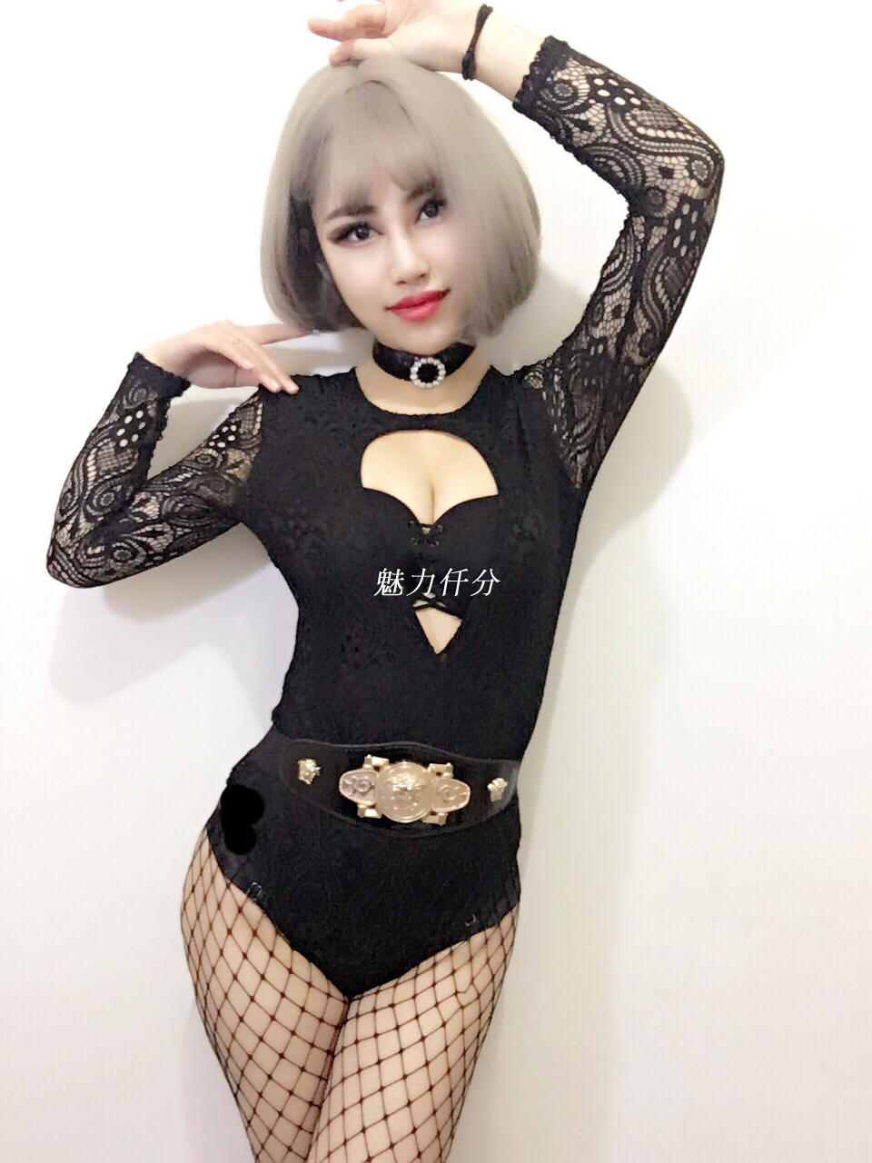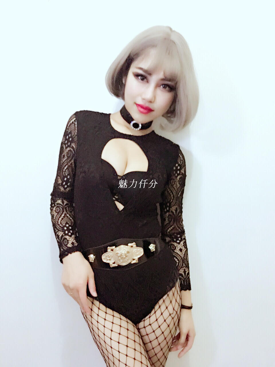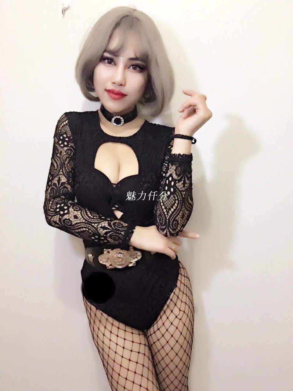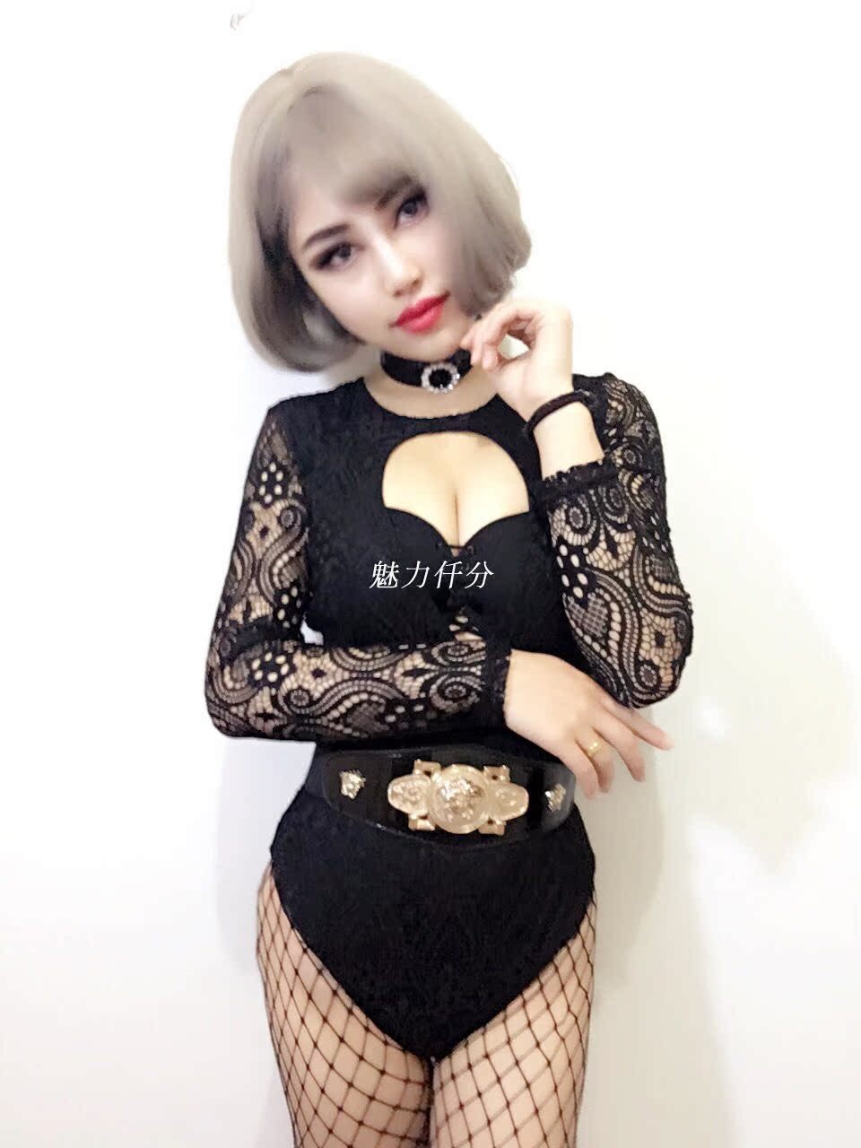 黑色S新品酒吧女歌手DJ舞臺服DS演出服復古性感歐美深v鏤空蕾絲連體褲