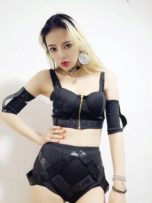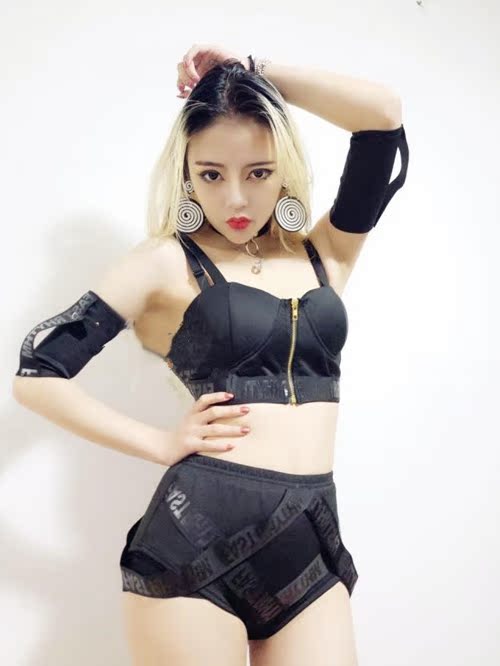 黑色S酒吧ds演出服新款嘻哈夜店領舞性感dj女歌手舞臺裝黑色團隊五件套