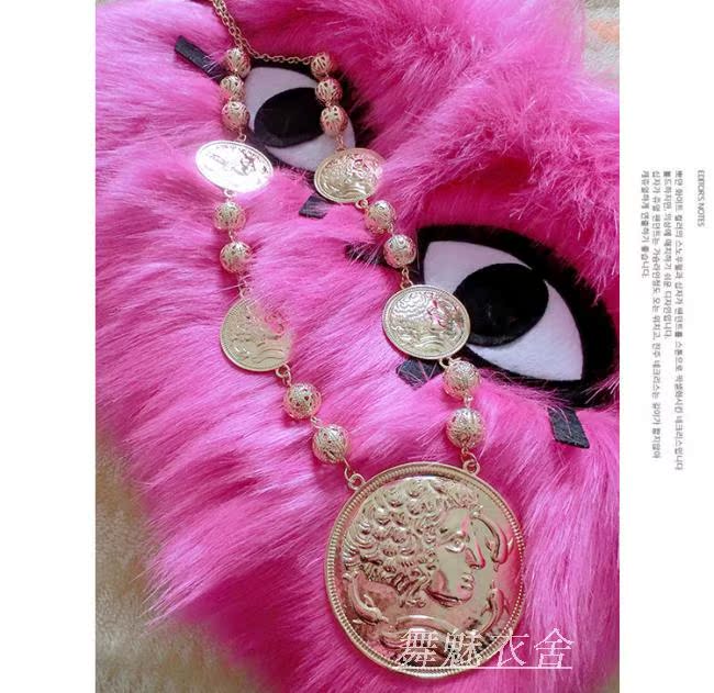 簡單的粗鏈配3個美人頭圓牌,氣質型爆!