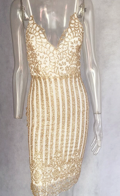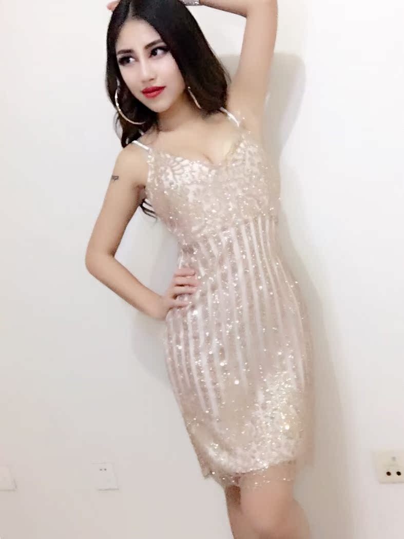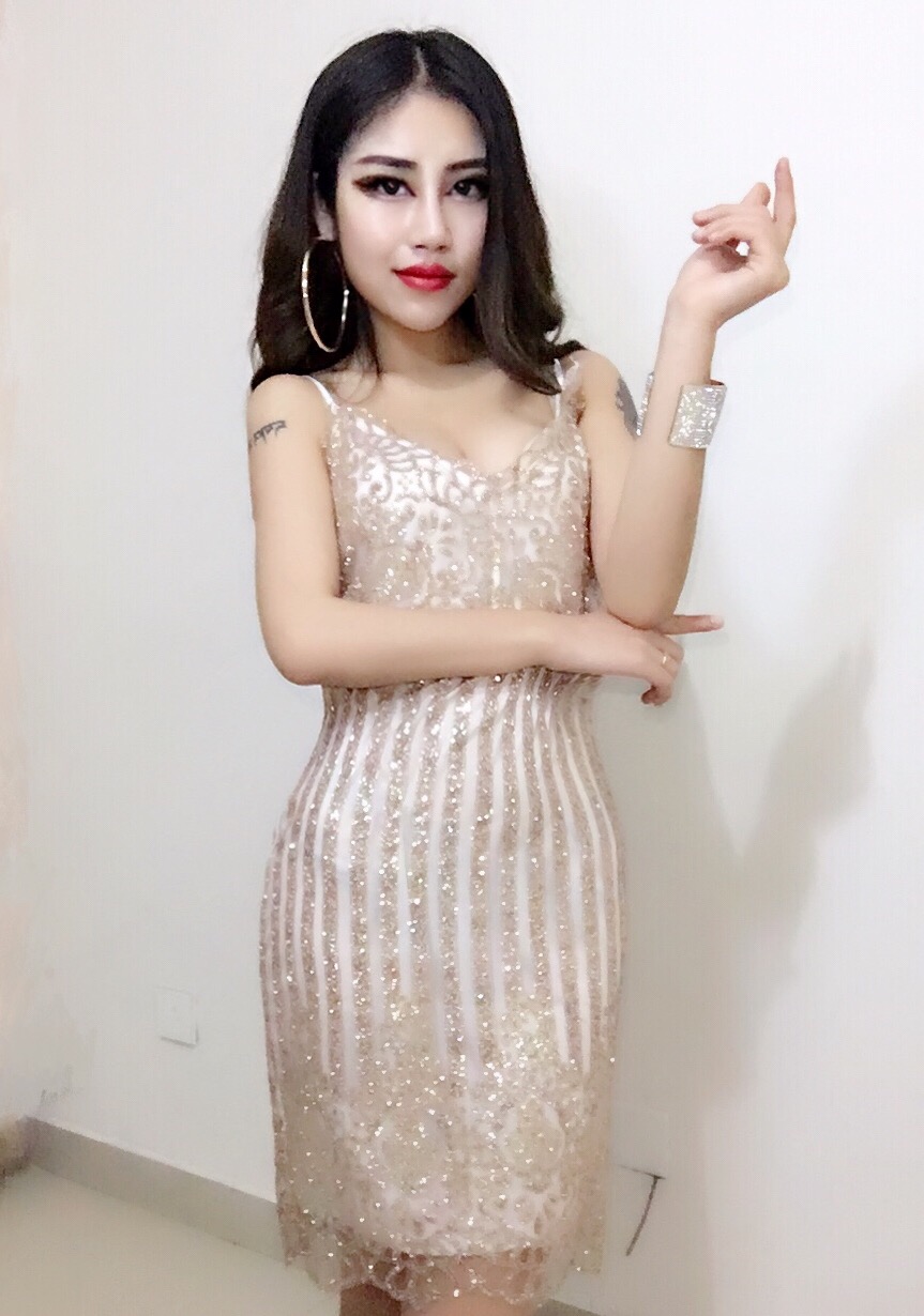 金色Sds演出服夜店DJ女歌手領舞服酒吧臺裝時尚亮片性感吊帶露背連衣裙