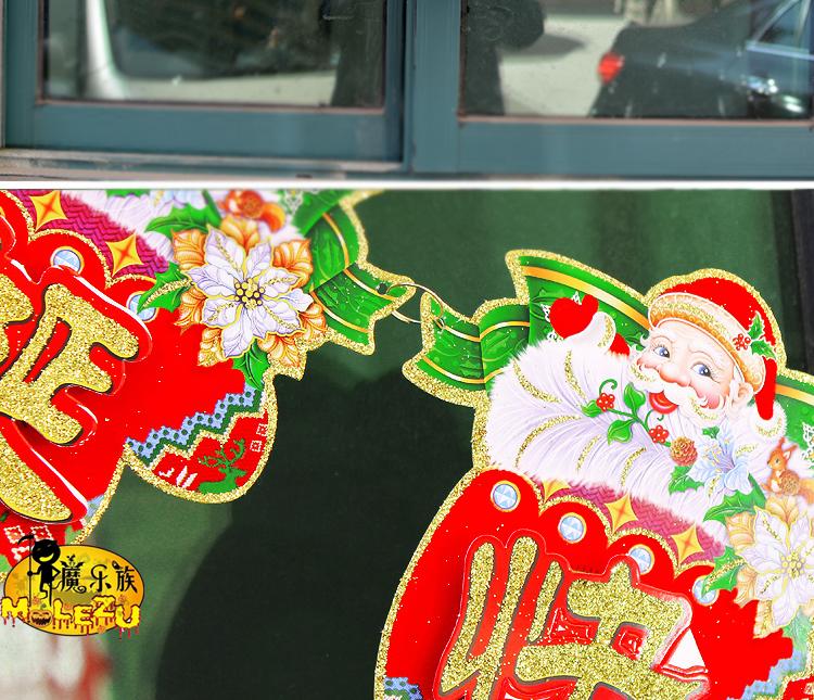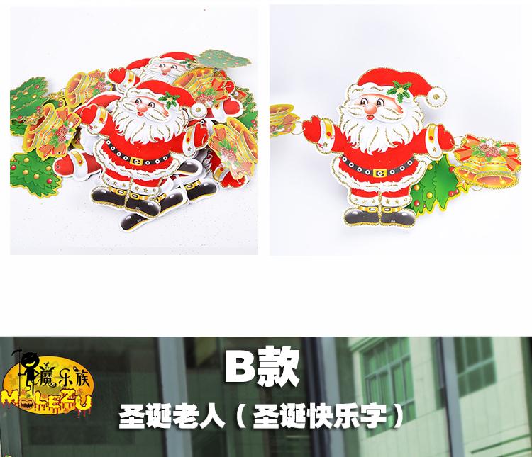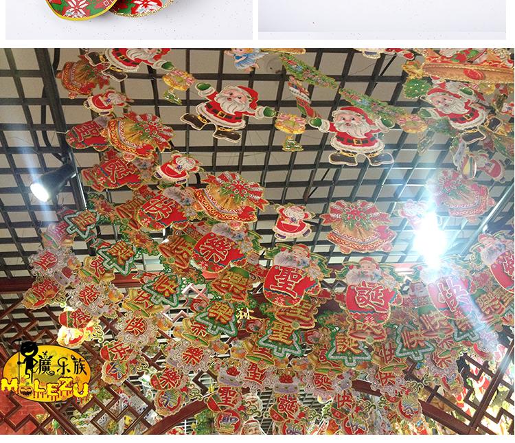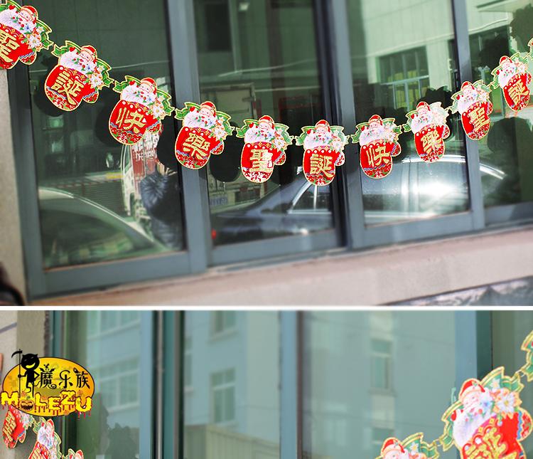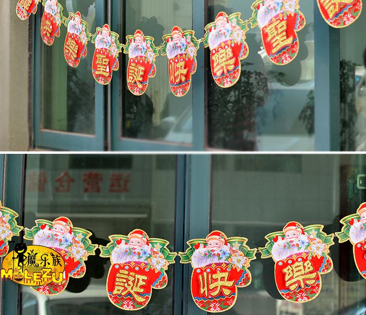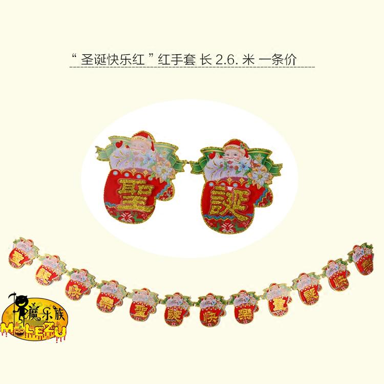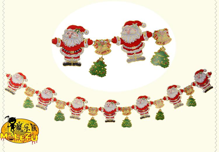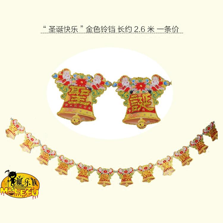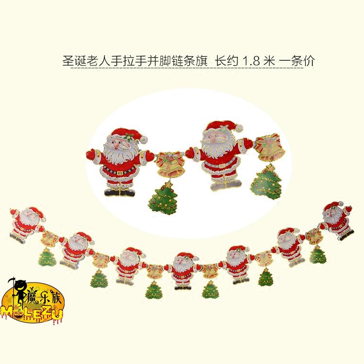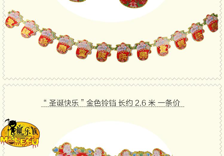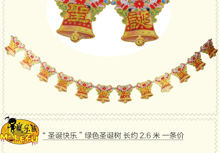 2.6米圣誕快樂鈴鐺款圣誕節道具裝飾品禮物 圣誕老人掛旗三角拉旗掛旗/翅膀 拉條拉旗