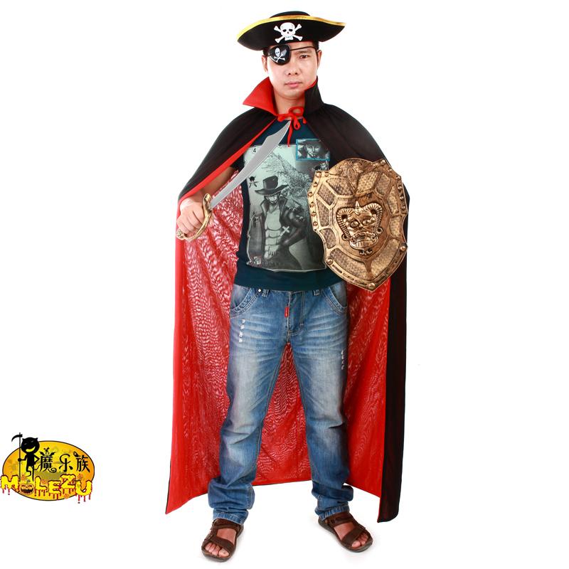 170厘米雙層海盜披風萬圣節服裝 成人兒童披風斗篷男海盜騎士女巫婆死神惡魔吸血鬼衣