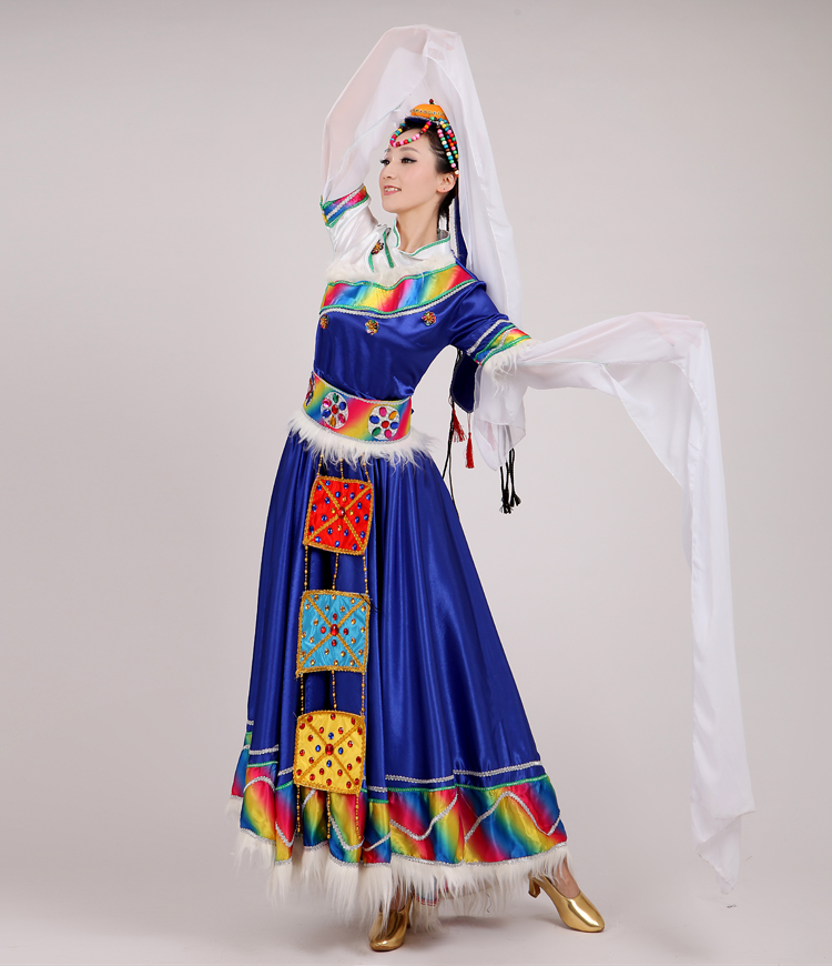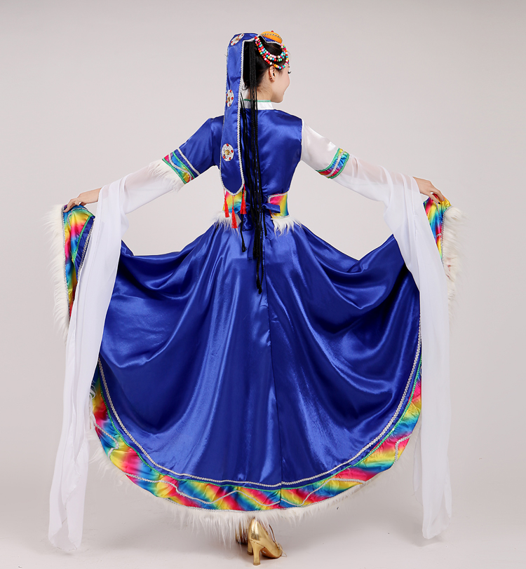 藍色S新款藏族舞蹈服裝女表演服大氣蒙古族服演出服少數民族水袖大擺裙