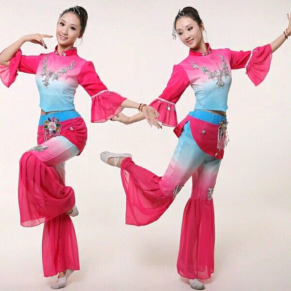 頭飾S新款民族舞蹈服裝古典舞蹈服裝秧歌服裝腰鼓廣場舞服扇子舞衣服女