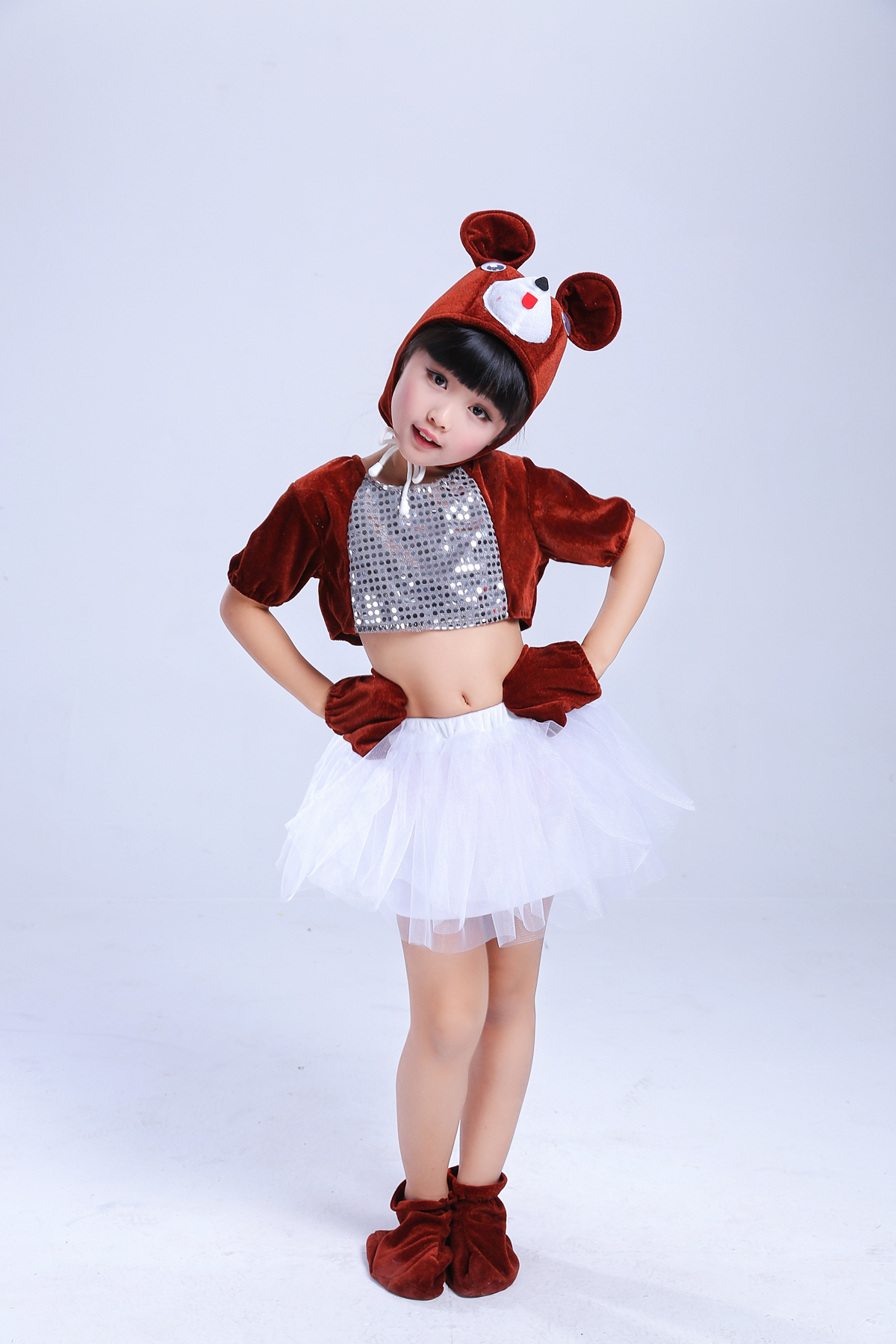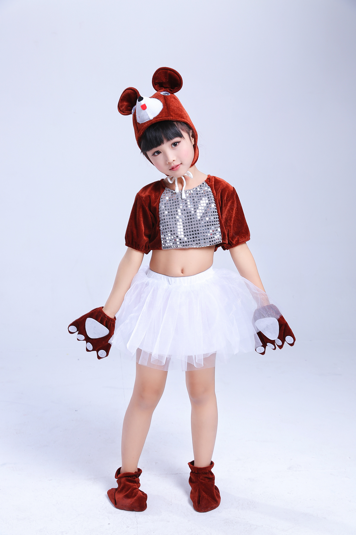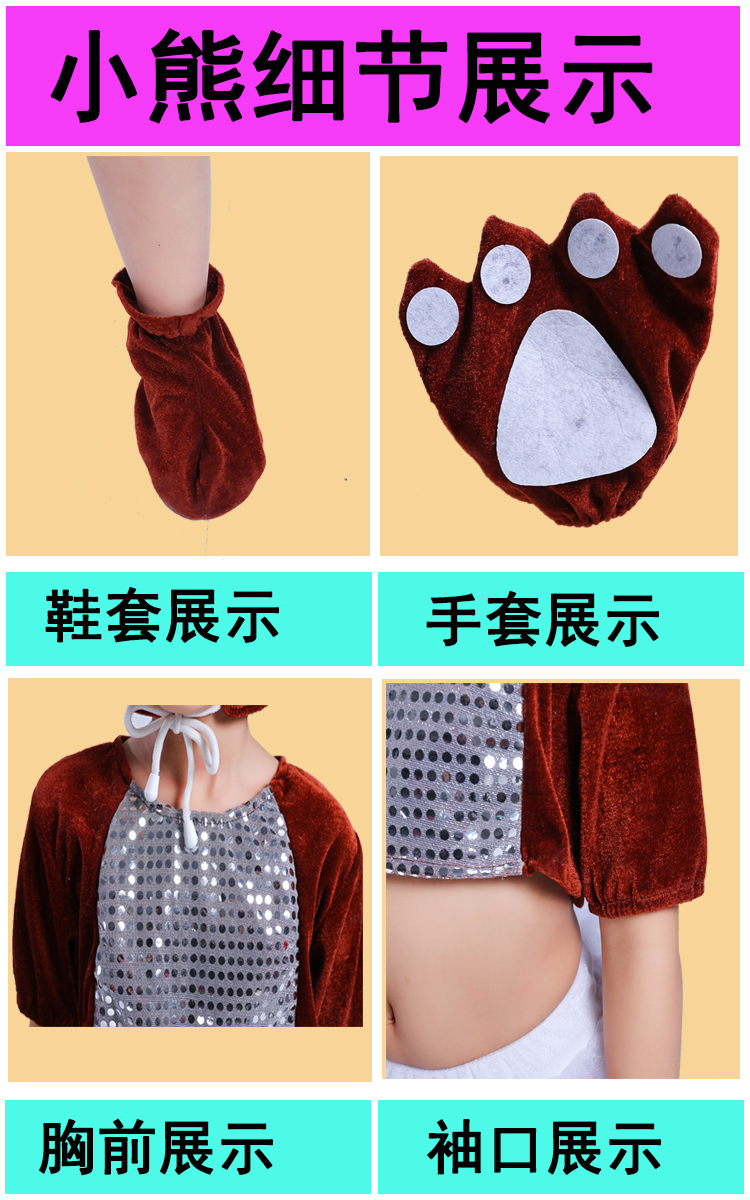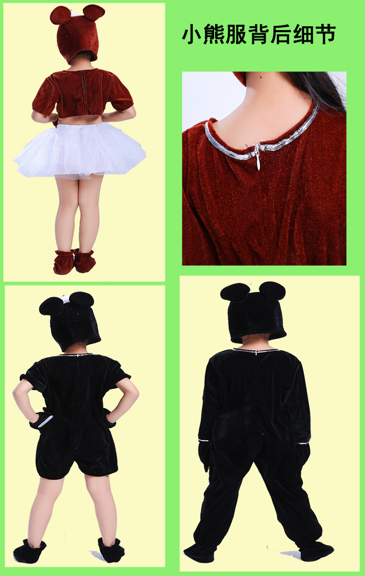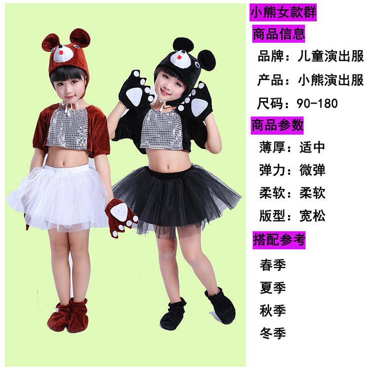 黑熊長款90cm兒童動物小熊表演服幼稚園舞蹈女童紗裙服六一棕熊黑熊演出服