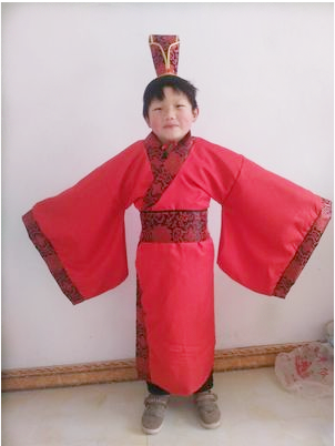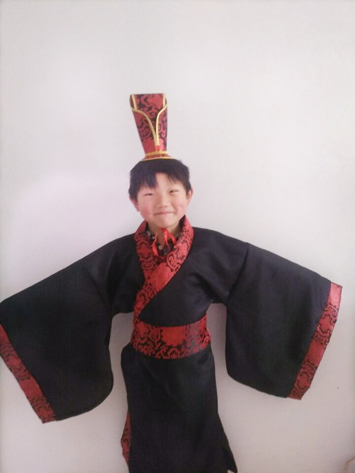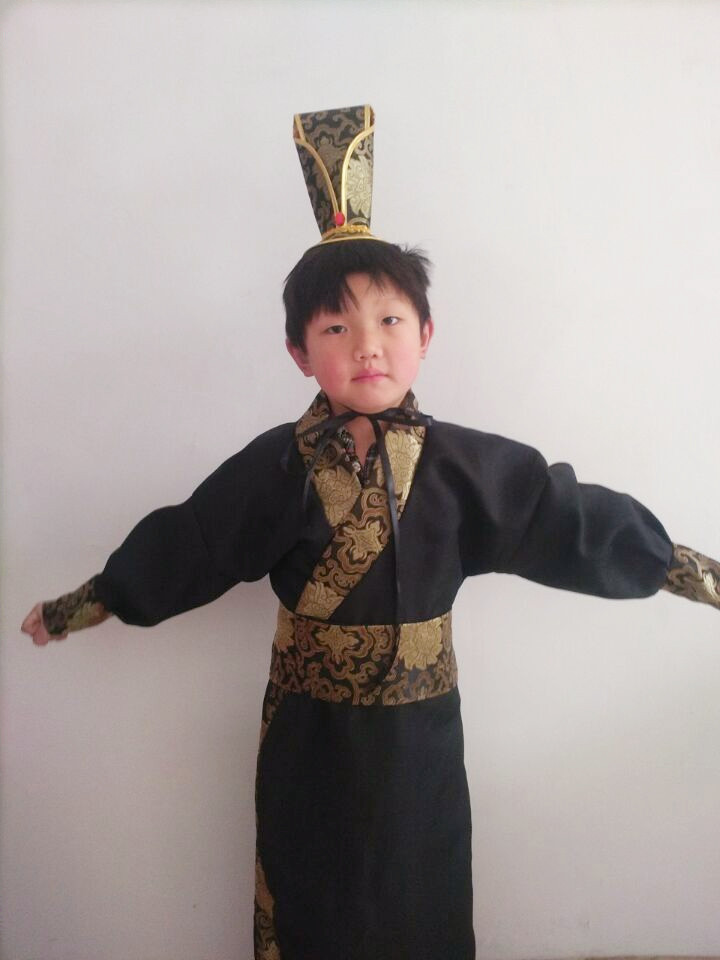 黑色劍袖(贈帽子)120cm-130cm兒童古裝漢服男 春秋秦漢三國大臣官服唐朝武俠服國學書童演出服