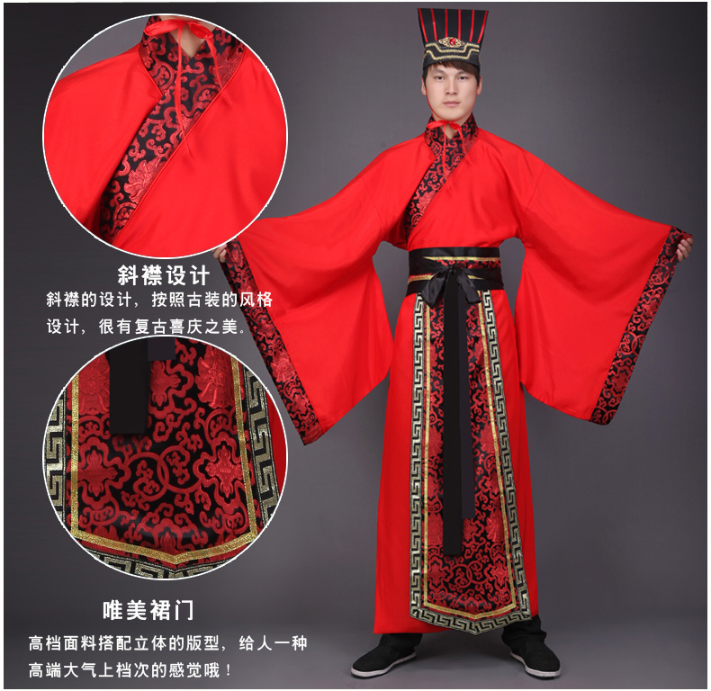 黑色男不帶頭飾S古代古裝紅色新娘新郎中式結婚喜服婚禮服裝漢服唐朝漢朝婚服男女