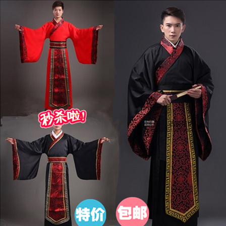 黑色158cm-165cm冬季古裝服裝漢服男改良書生俠客影視戲服古裝演出服畢業班服唐服