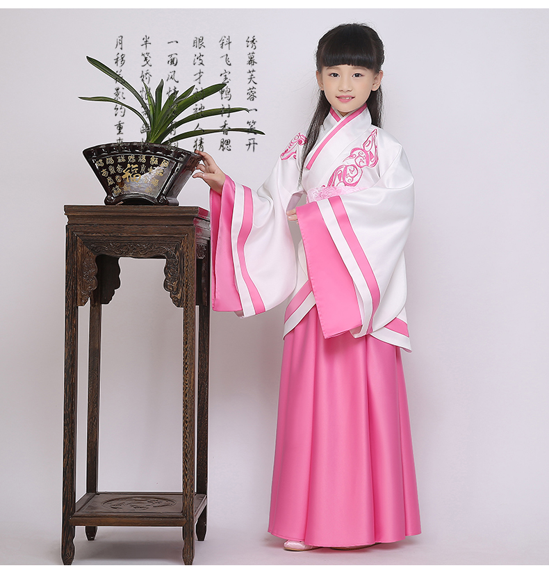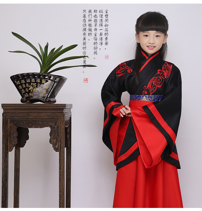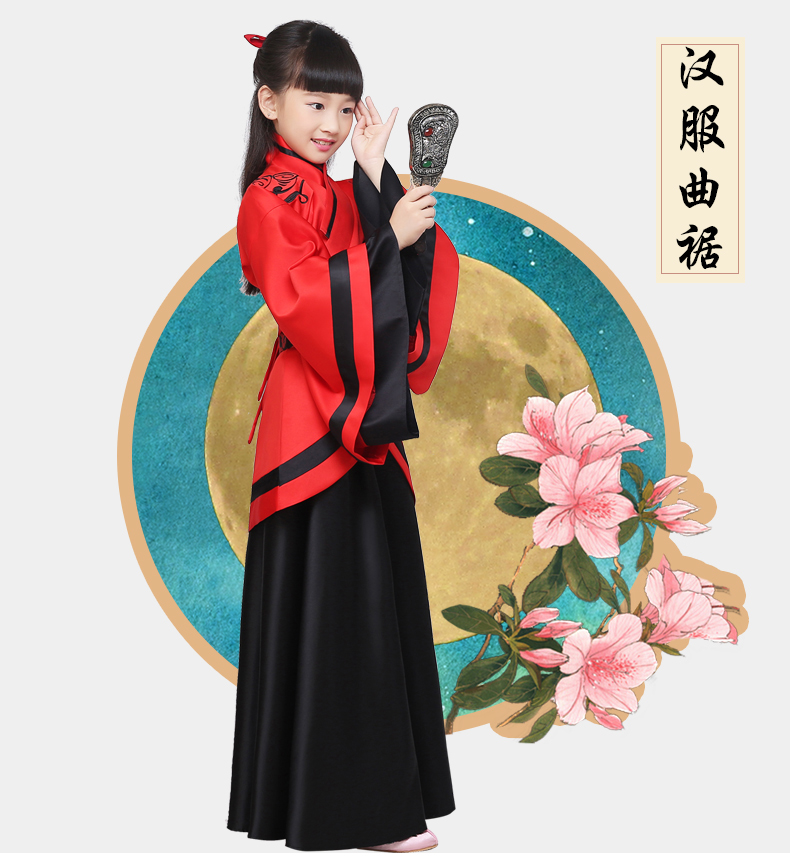 黑色110兒童漢服繡花曲裾女童古裝春款小孩改良漢服民族風演出服寫真服裝
