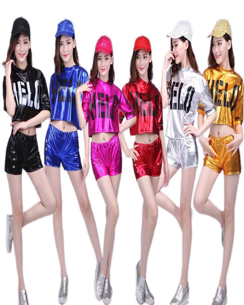 黃色上衣加短褲S新款夏季演出服ds亮片女現代舞蹈服成人嘻哈長短褲爵士舞套裝學生