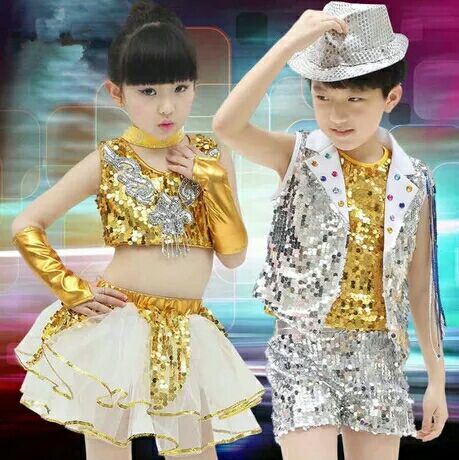 黃色110cm幼兒男女童亮片爵士舞街舞表演服六一兒童節新款舞臺舞蹈演出服裝