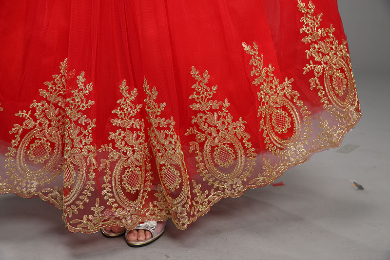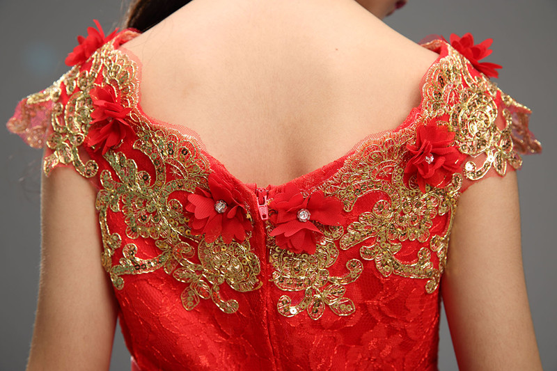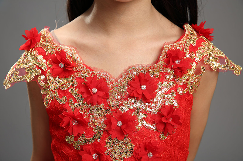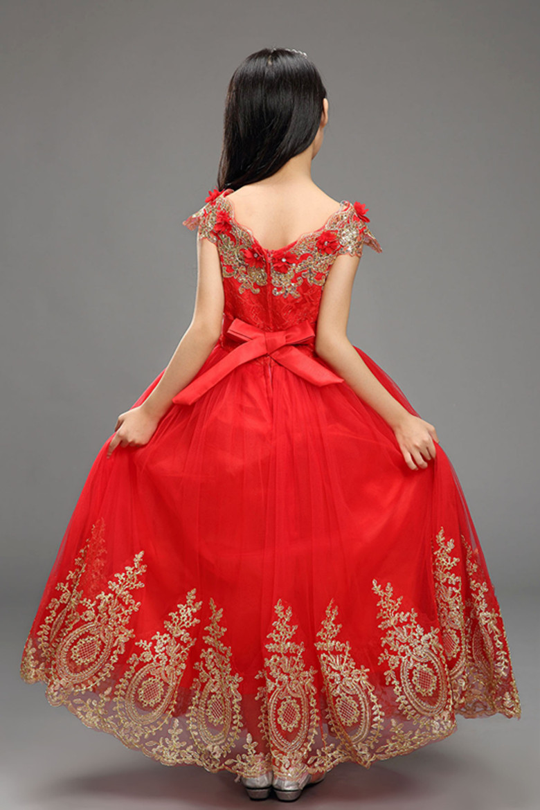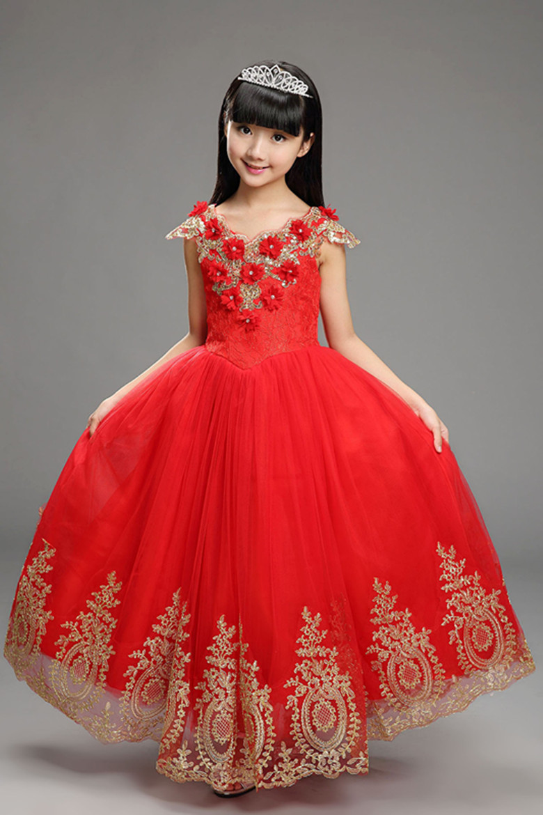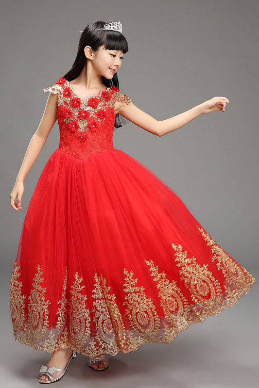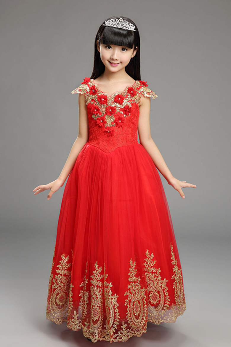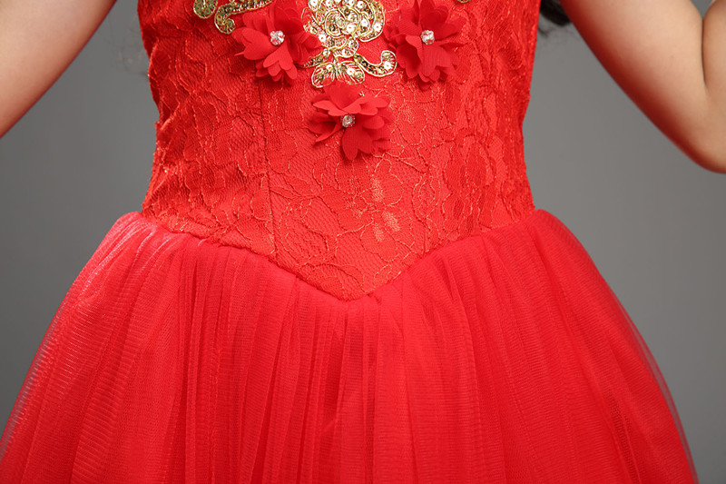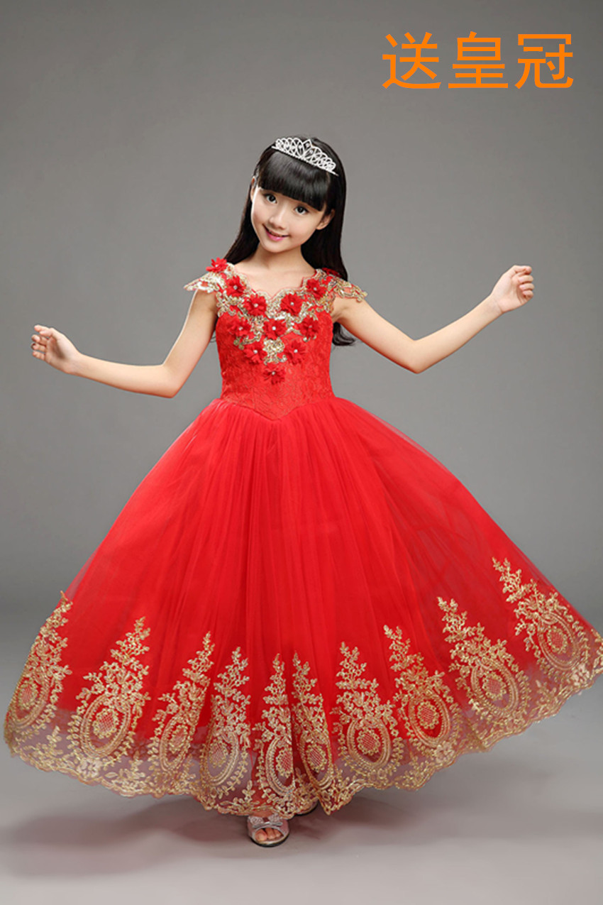 酒紅色100cm童裝女童禮服公主裙夏款紅色韓版蕾絲裙子兒童連衣裙蓬蓬表演花童