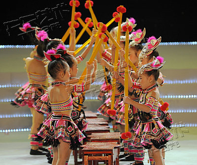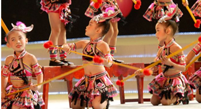 酒紅色100cm(100cm(100cm))小荷風采全國少兒舞蹈打扁擔表演服兒童演出服苗族羌族土家族服裝