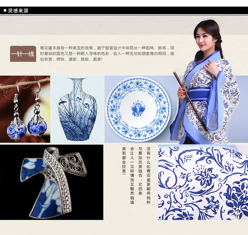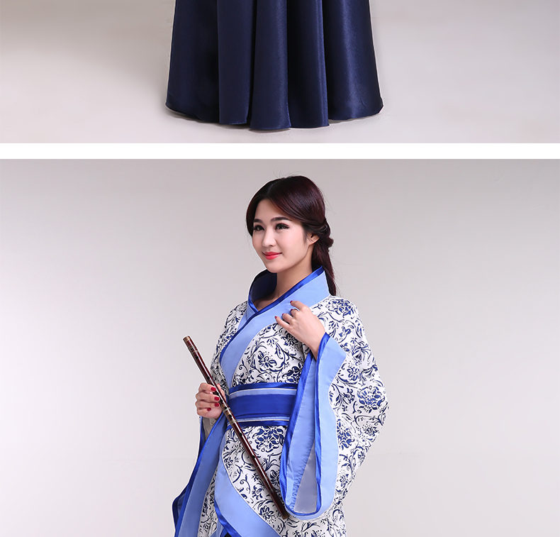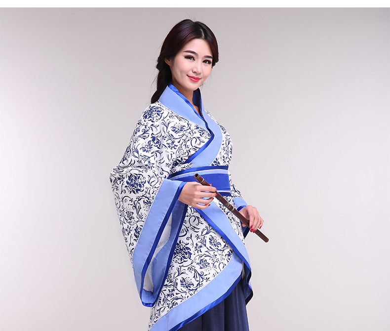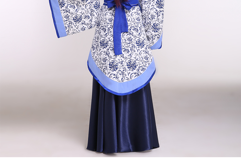 青花瓷上衣藍色裙子贈送發帶一條S適合身高150-160cm古裝服裝 仙女古典舞伴舞服裝青花瓷演出服古典舞蹈服漢服女式