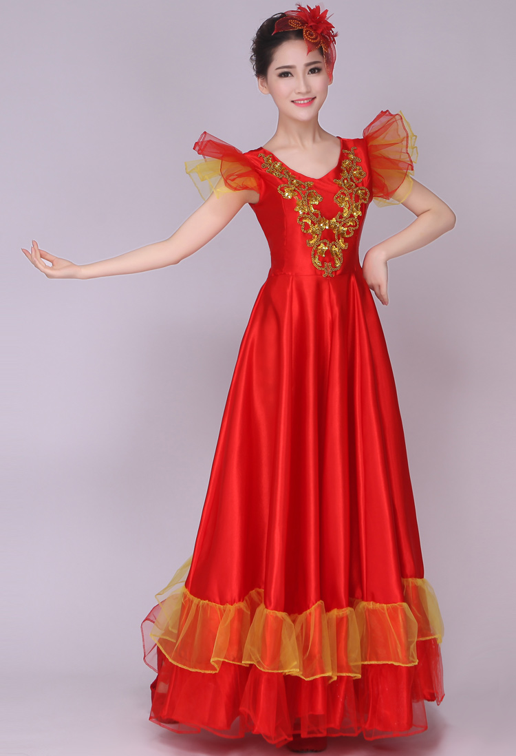 長袖180度S2016新款開場舞大擺裙演出服合唱服長裙現代舞古典民族舞蹈服裝女