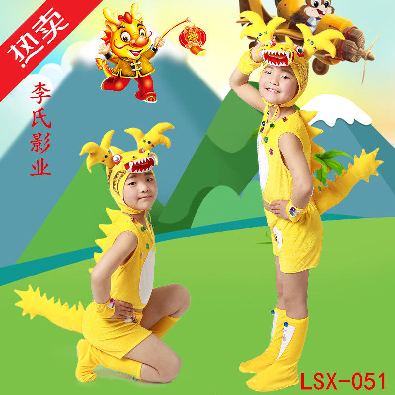 如圖100cm兒童動物服裝幼稚園舞蹈演出服舞臺服裝民族龍小龍人表演服飾