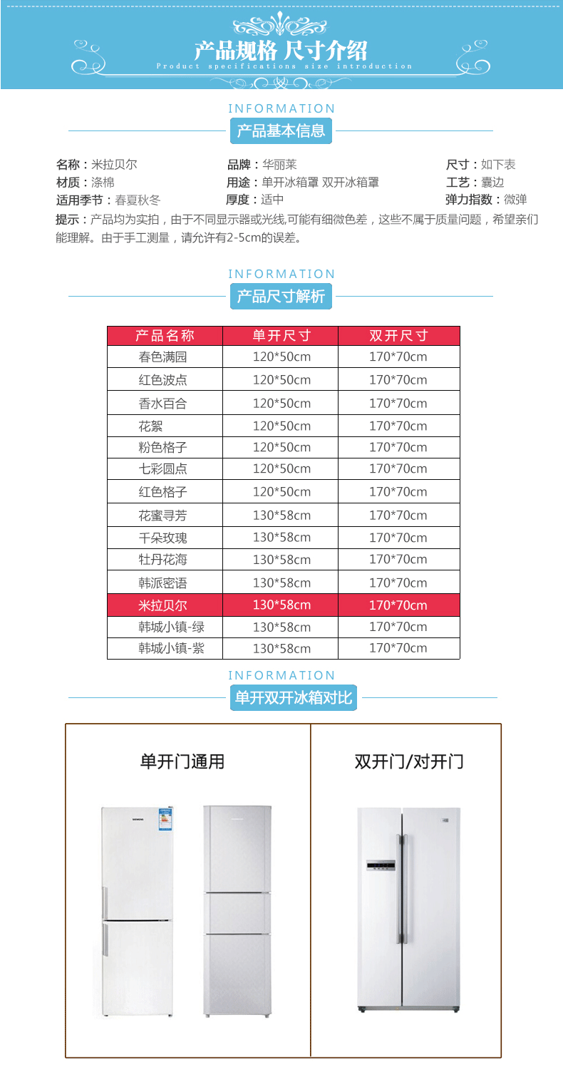 雙開:175x72cm東之晟田園冰箱罩冰箱蓋巾冰箱布藝防塵巾冰箱防塵罩田園布藝