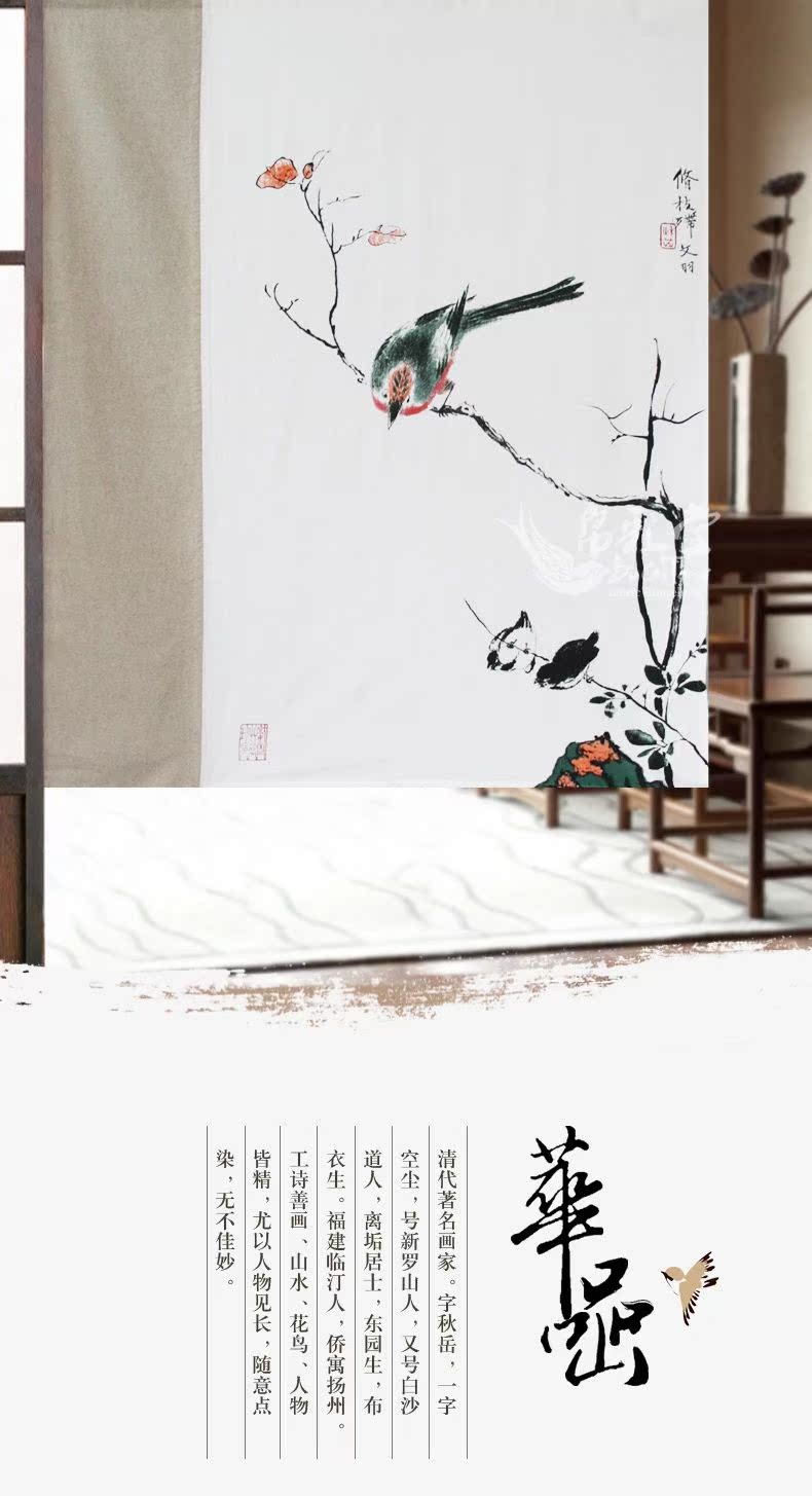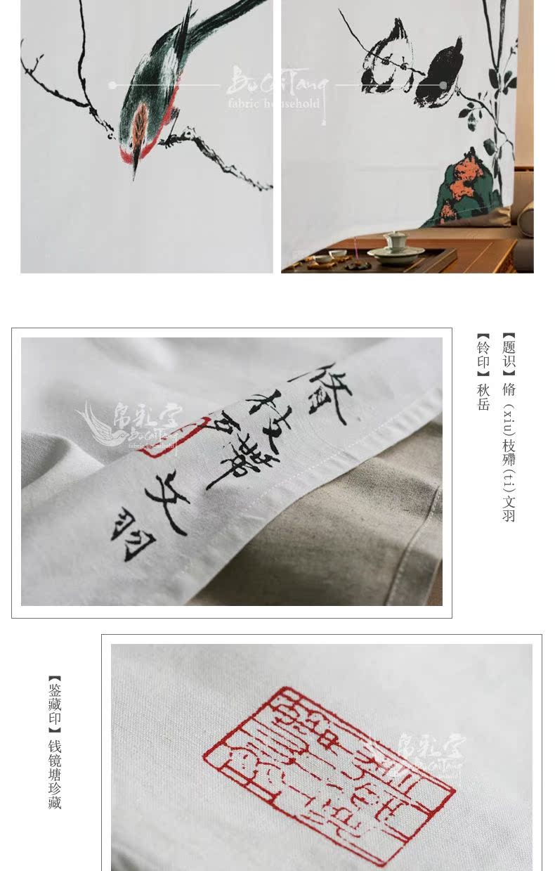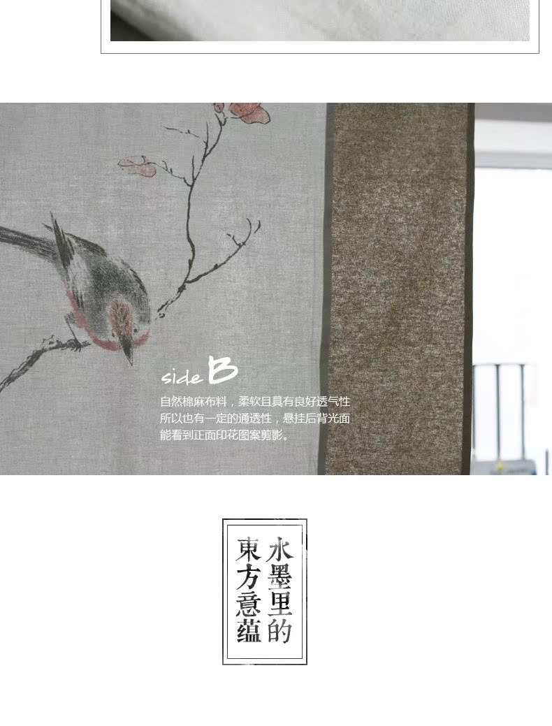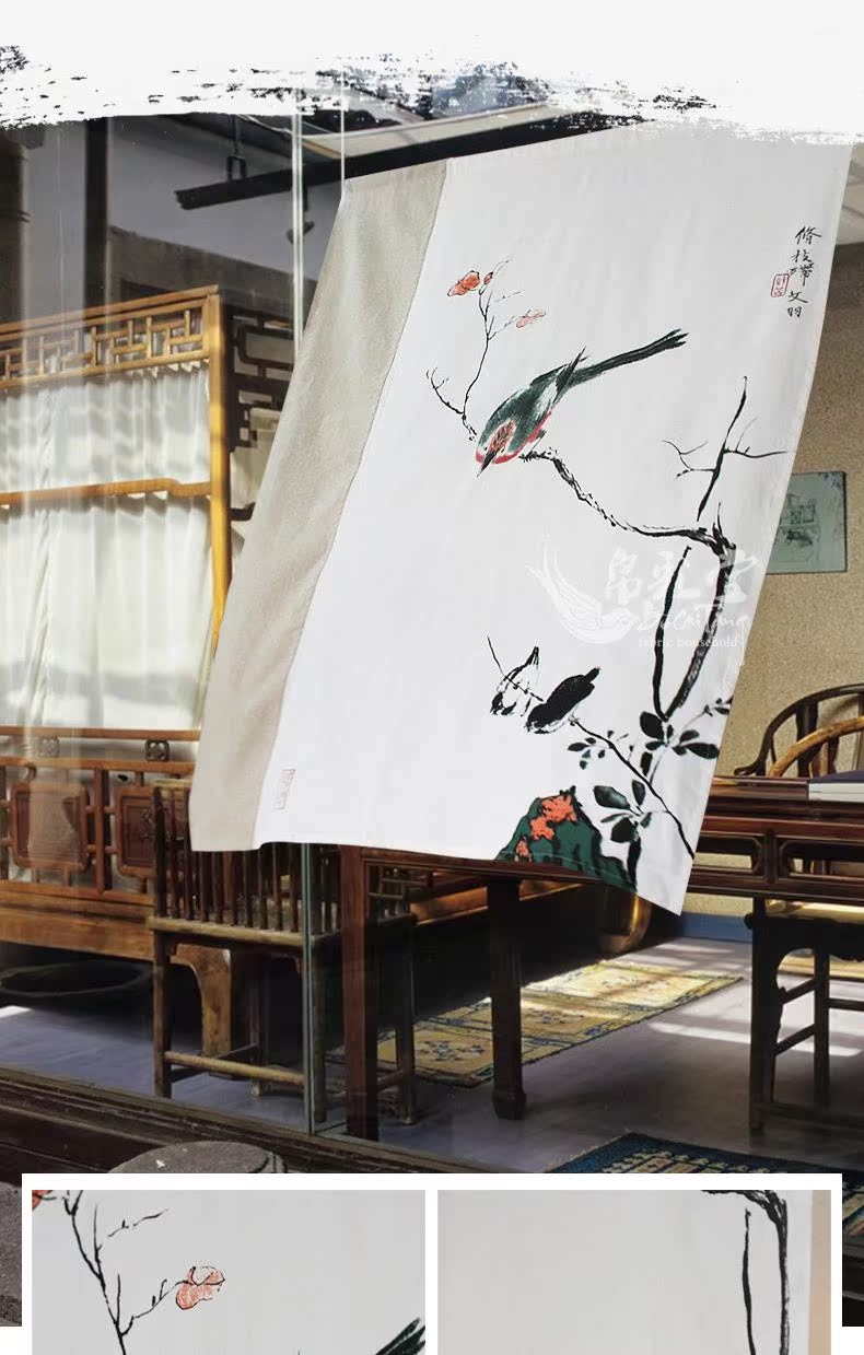 整片110寬度-130cm長度 含桿民族風中式布藝門簾臥室客廳隔斷簾風水開運簾棉麻布門簾
