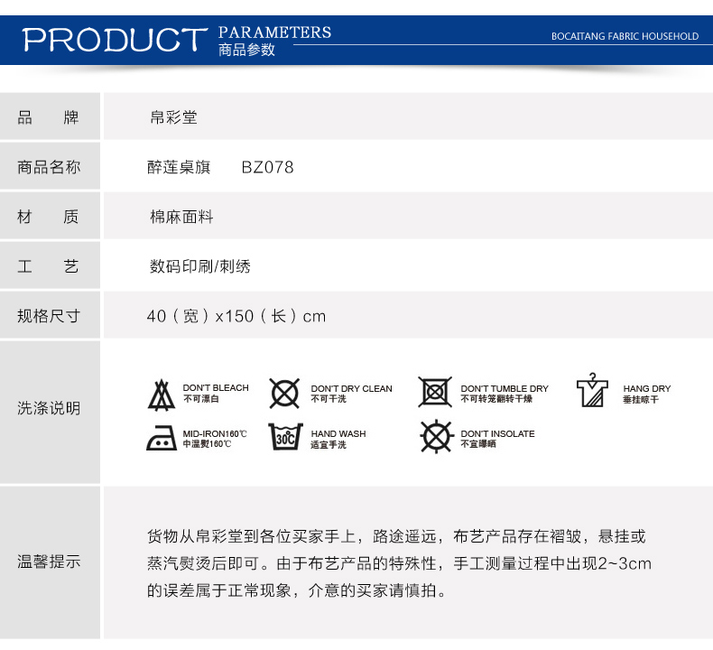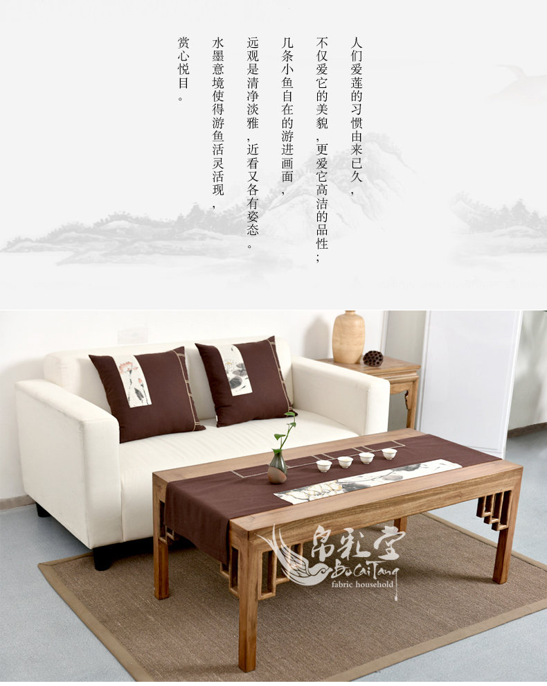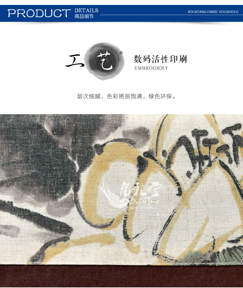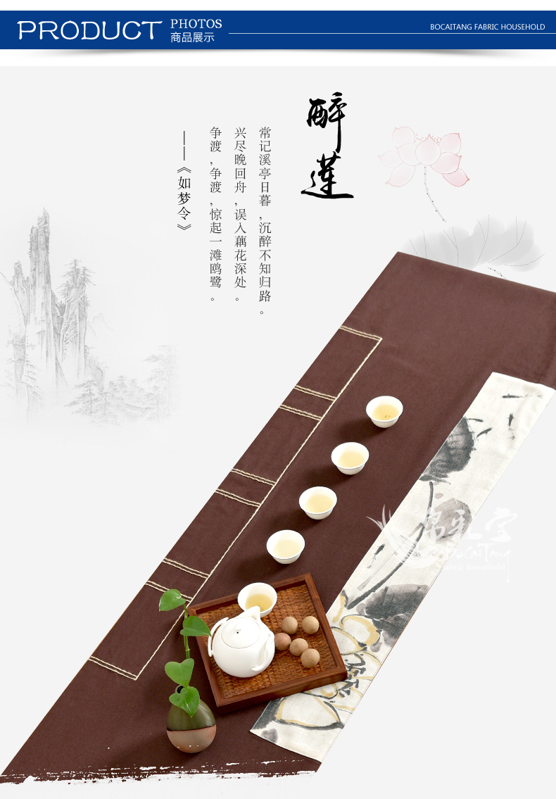 醉蓮38*150cm帛彩堂 民族風布藝桌旗棉麻中式茶席餐桌布茶幾鞋柜裝飾蓋布 醉蓮