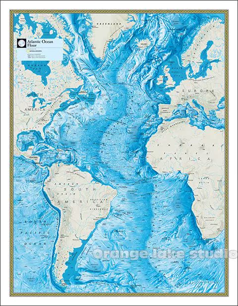 海洋地圖 大西洋 ATLANTIC 海底地形圖 辦公室教室裝飾 純棉布畫芯 超厚實