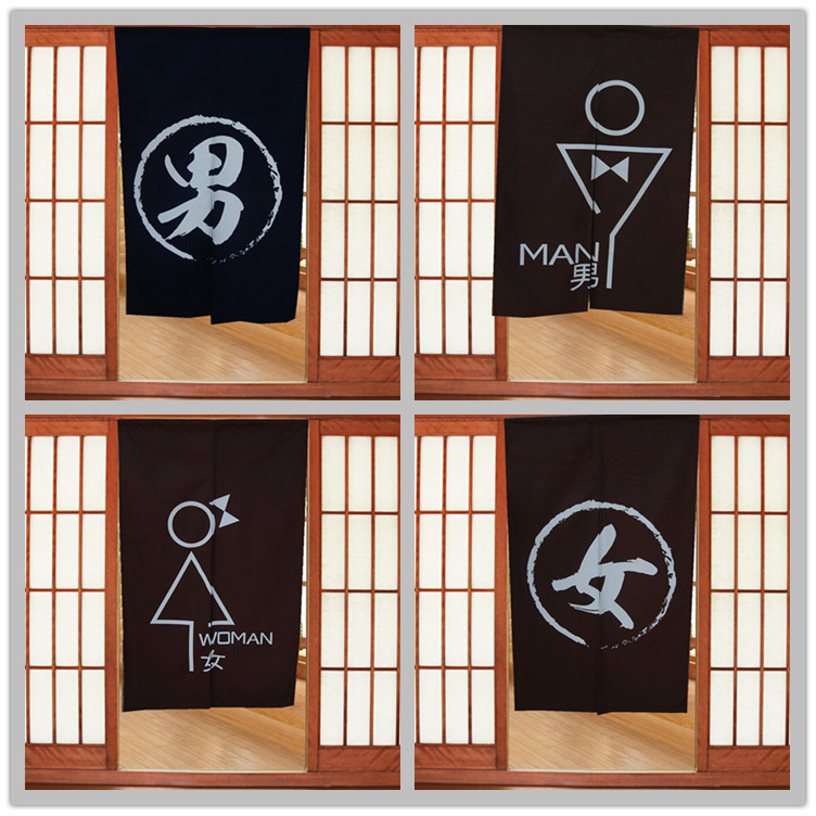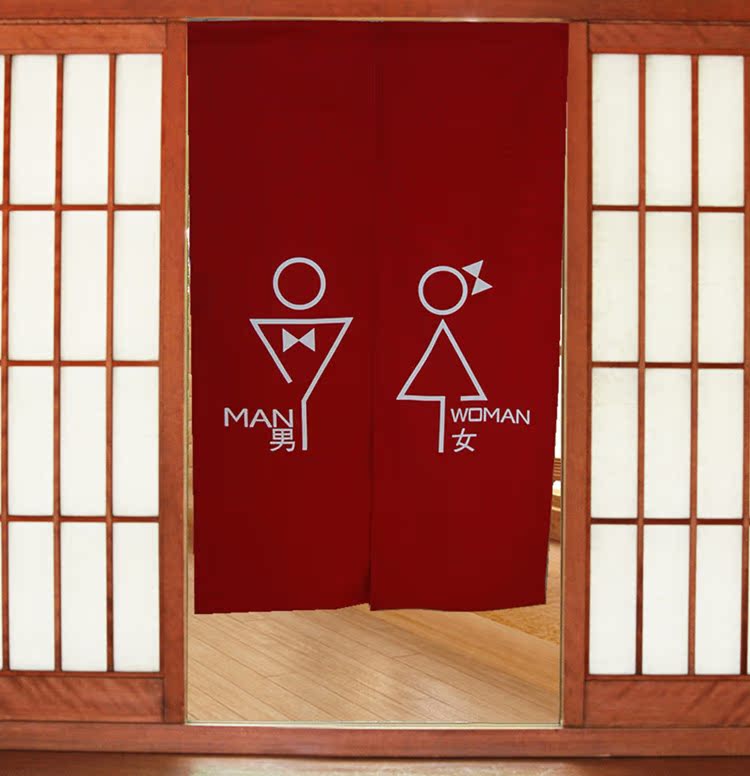 黑色大尺寸男女標識衛生間洗手間廁所遮光門簾 洗浴隔斷簾澡堂浴室掛簾