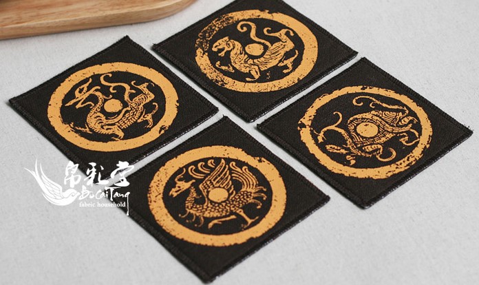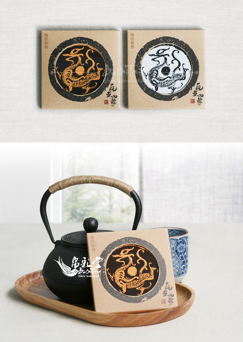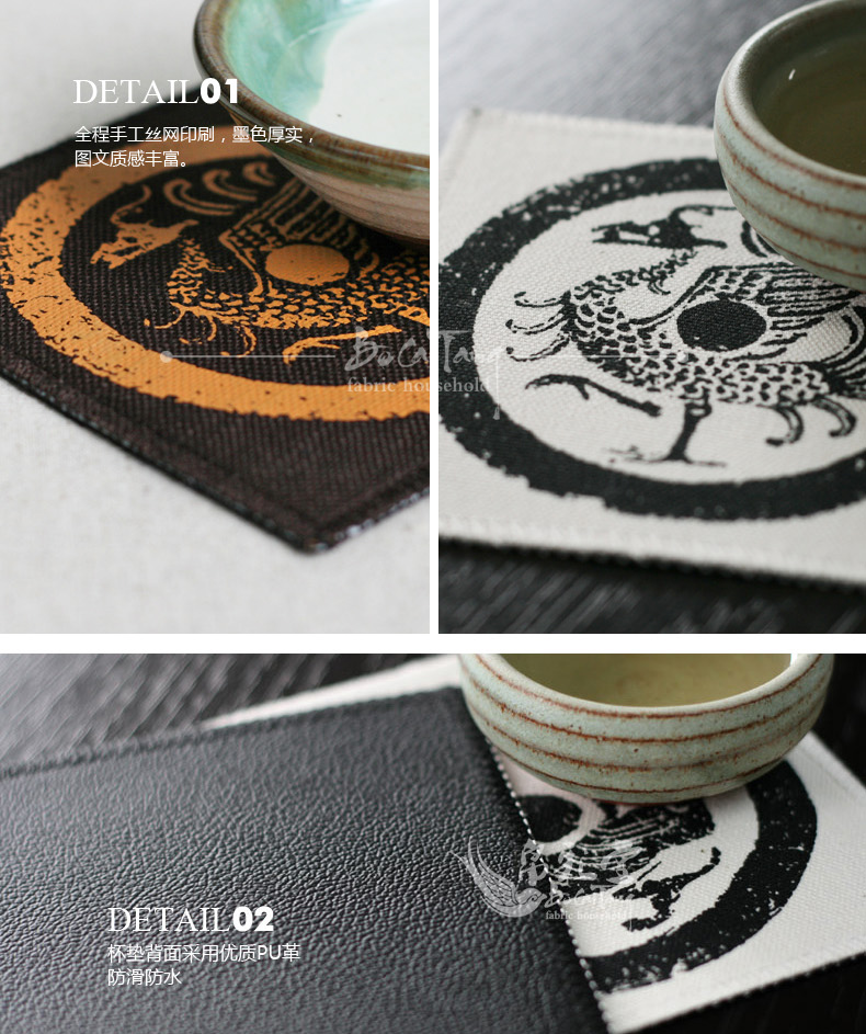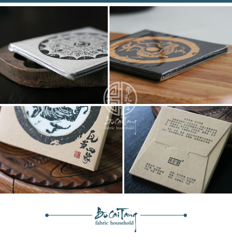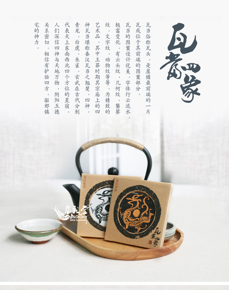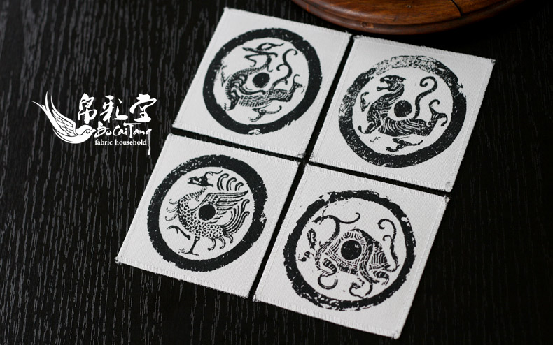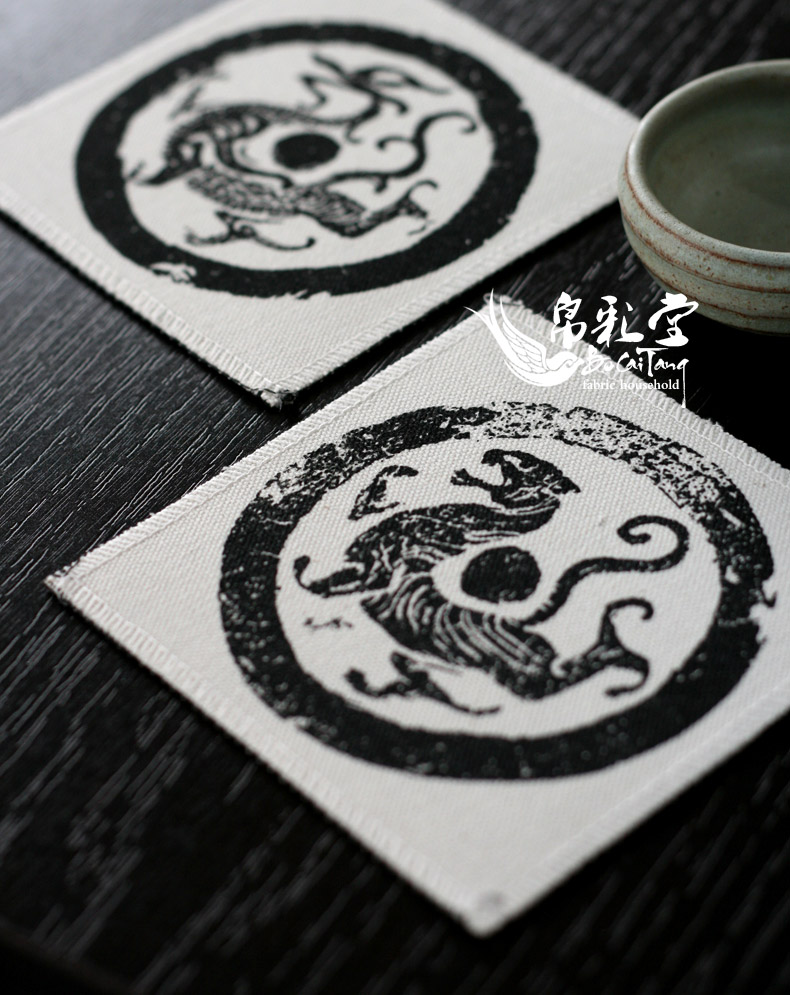 黑白色帛彩堂瓦當四象中式純棉拓片印花布藝方形杯墊茶壺墊碗墊隔熱墊