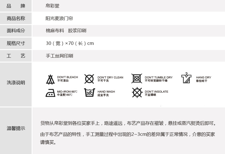 棗紅色30*70單件 不含桿帛彩堂 棉麻門簾 中式布藝門簾掛簾 臥室客廳隔斷門簾 陽光麥浪