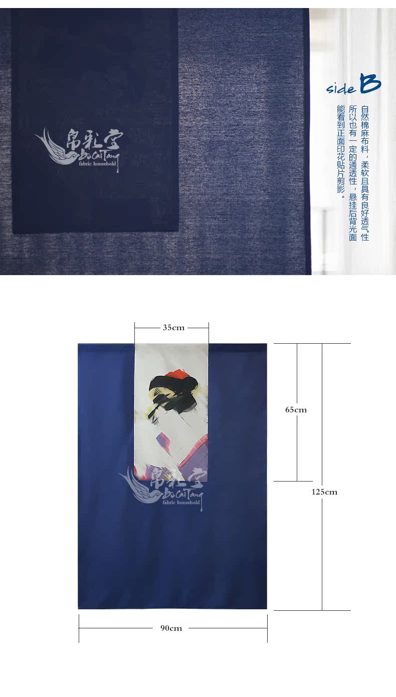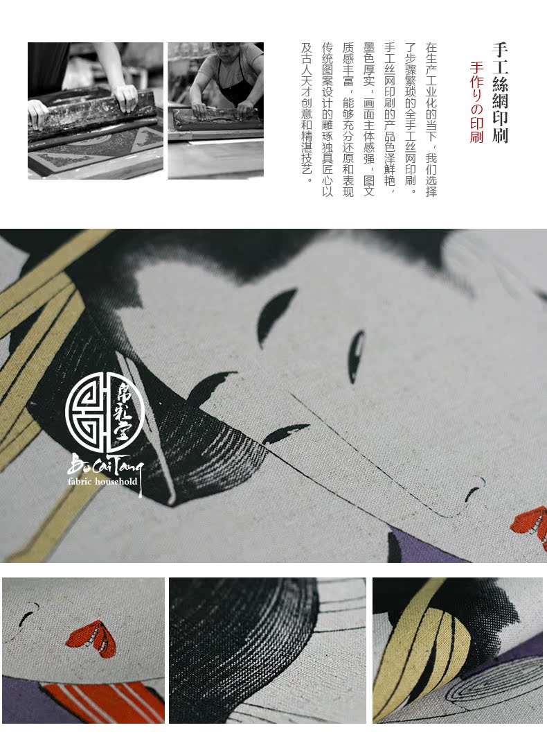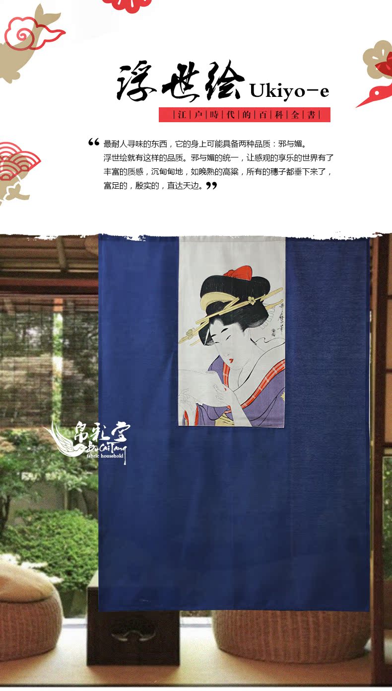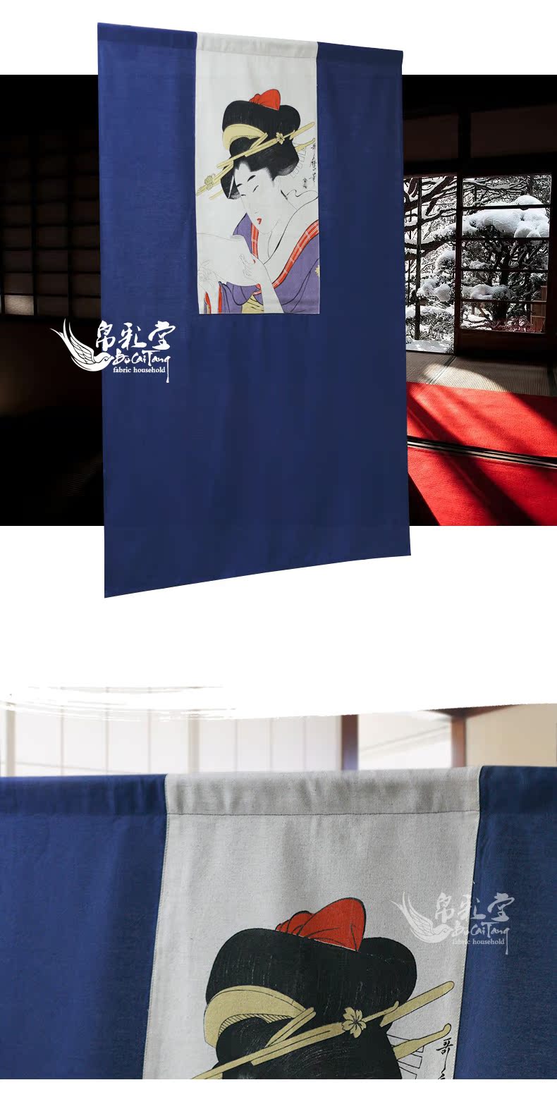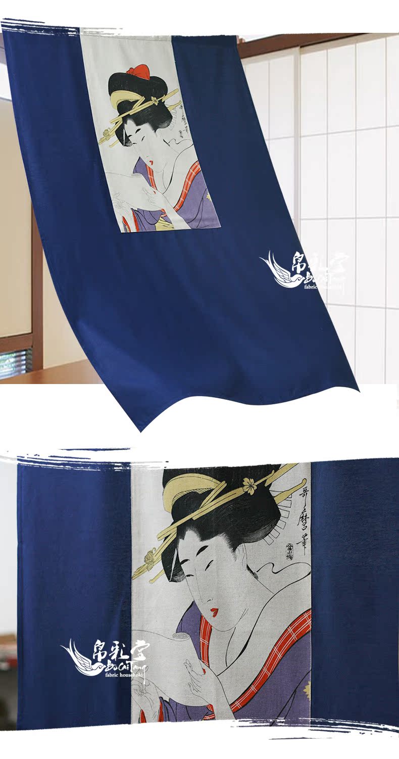 送桿 90寬--125cm長度帛彩堂 新品日式浮世繪布藝門簾風水簾臥室高檔隔斷簾 多磨仕女圖