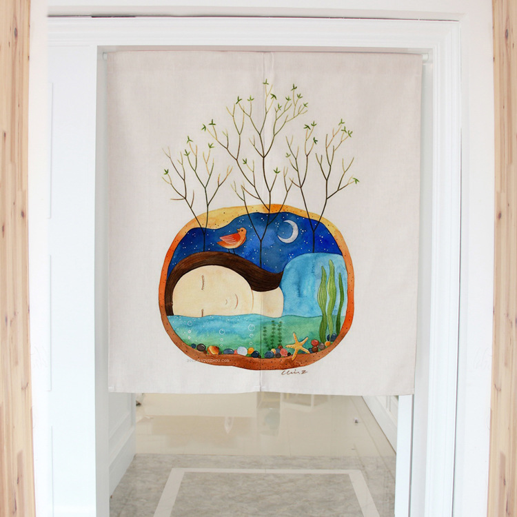 厚磅棉麻,可以定制不同大小,顏色,圖案,定制請先咨詢客服再下單,常見門簾尺寸寬80cmx高90cm,寬85cmx高120cm默認半開式門簾上部份相連,下部份分開,不是整片