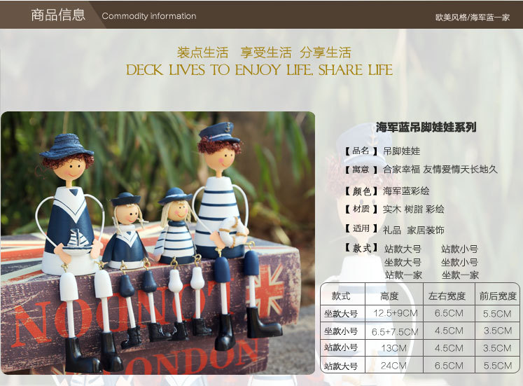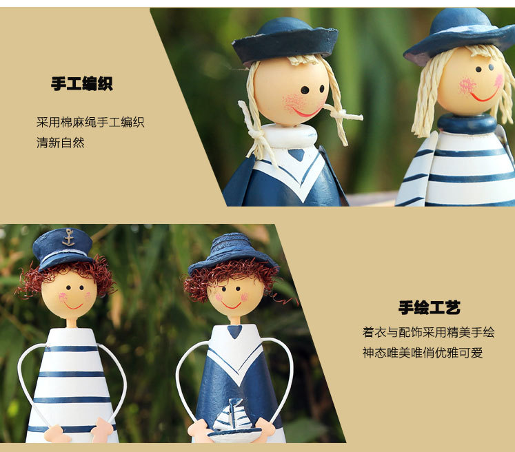 海軍娃娃小號卷發一對地中海吊腳娃娃酒柜裝飾品擺件女生房間創意海軍模型擺設家居飾品