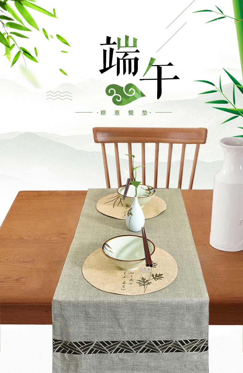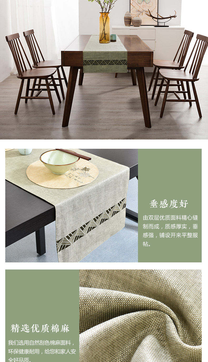 桌旗(單件)28*28cm 現代中式桌旗 清新綠布藝茶幾旗客廳茶席 刺繡長餐桌臺布
